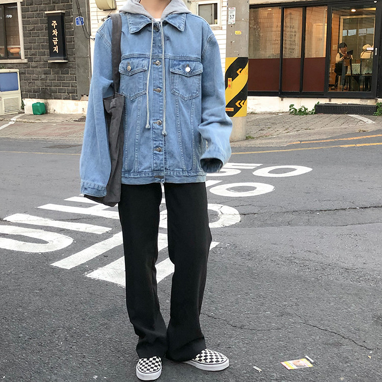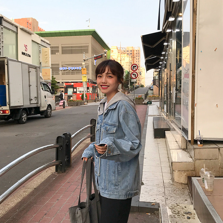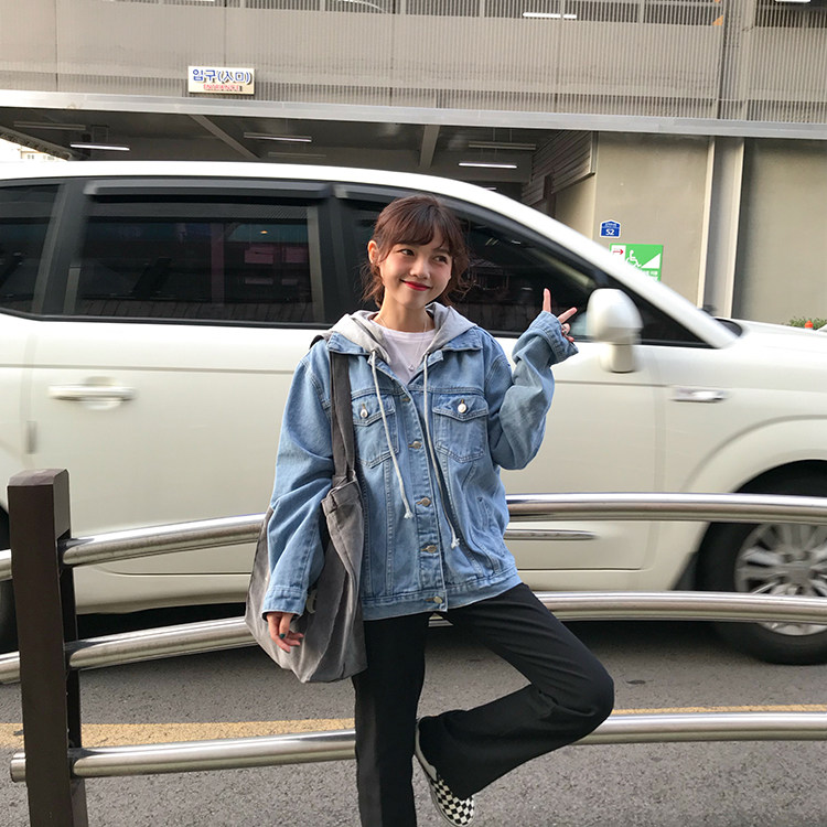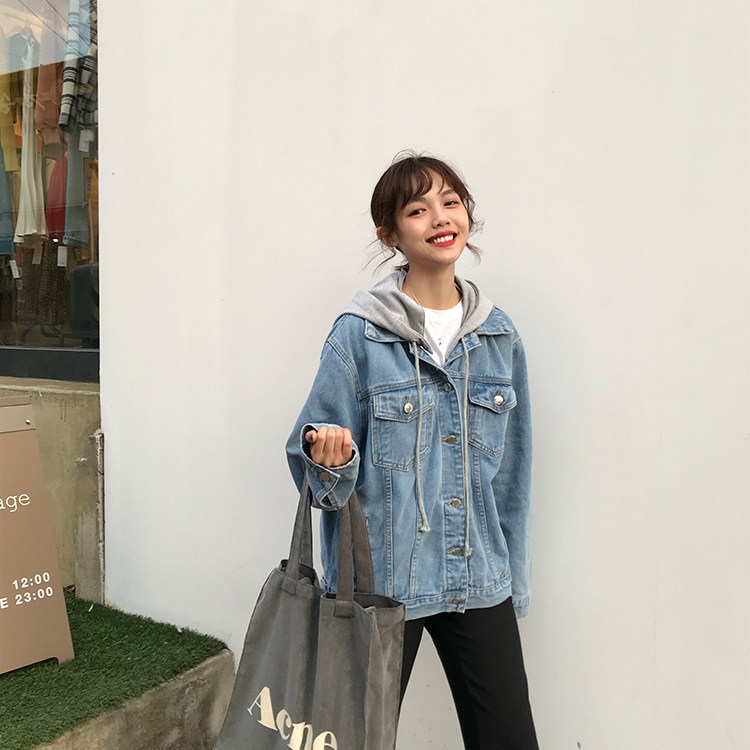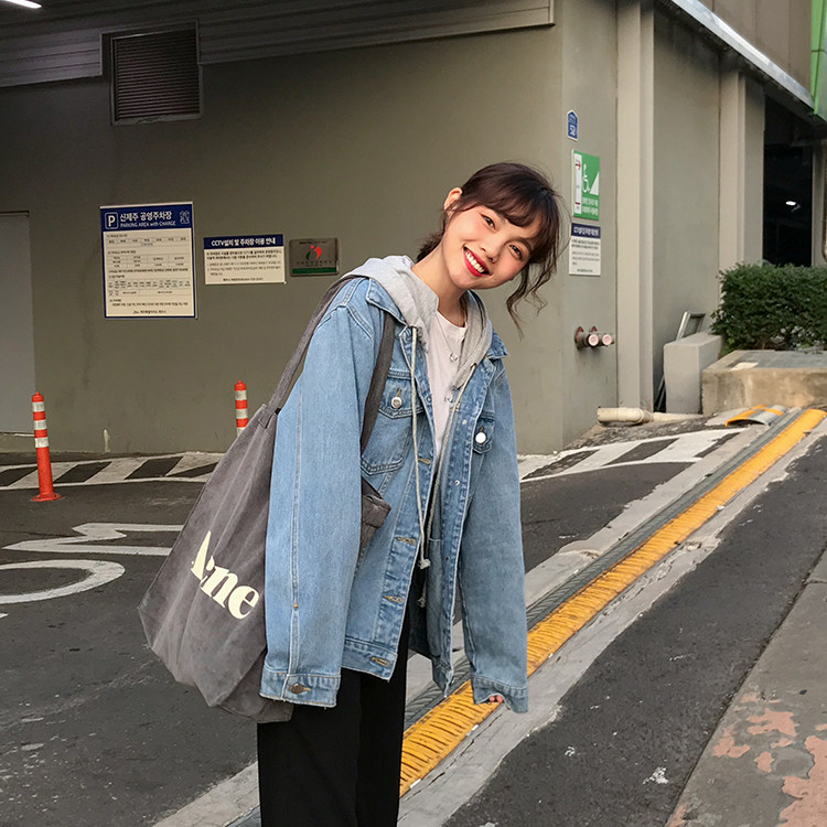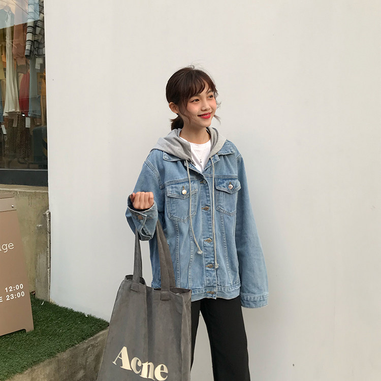 Женские джинсы корейского стиля, свободная джинсовая куртка из двух частей, повседневные пальто с отстегивающимся воротником, 2019