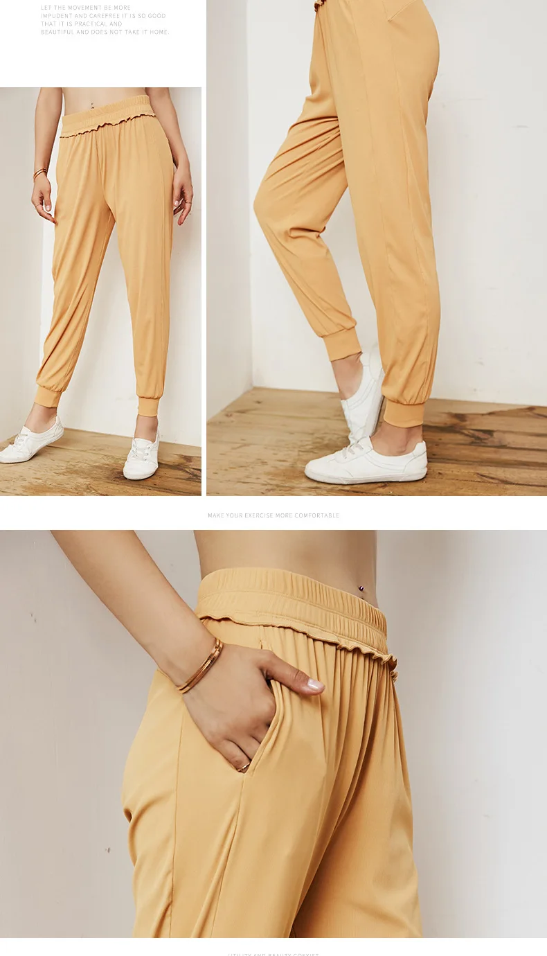 Женские свободные спортивные штаны, быстросохнущие штаны для фитнеса, штаны для бега с высокой талией, эластичные однотонные штаны для танцев, спортивные штаны для женщин