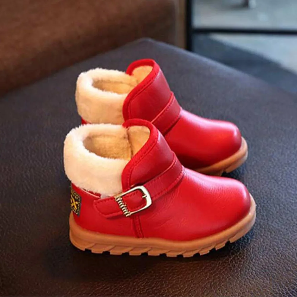 Детские однотонные кожаные теплые ботинки martin для маленьких девочек; зимняя обувь принцессы