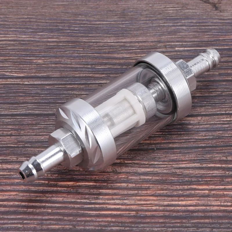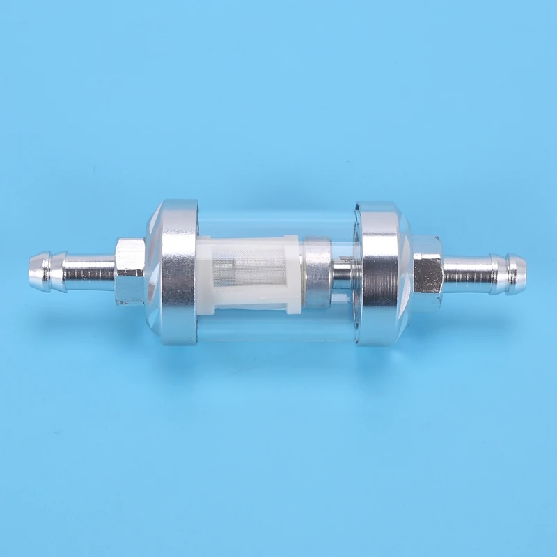 Universal Chrome Glass Fuel Petrol crude oil engine Inline Filter 5/16 "8mm Silver for Motorcycles