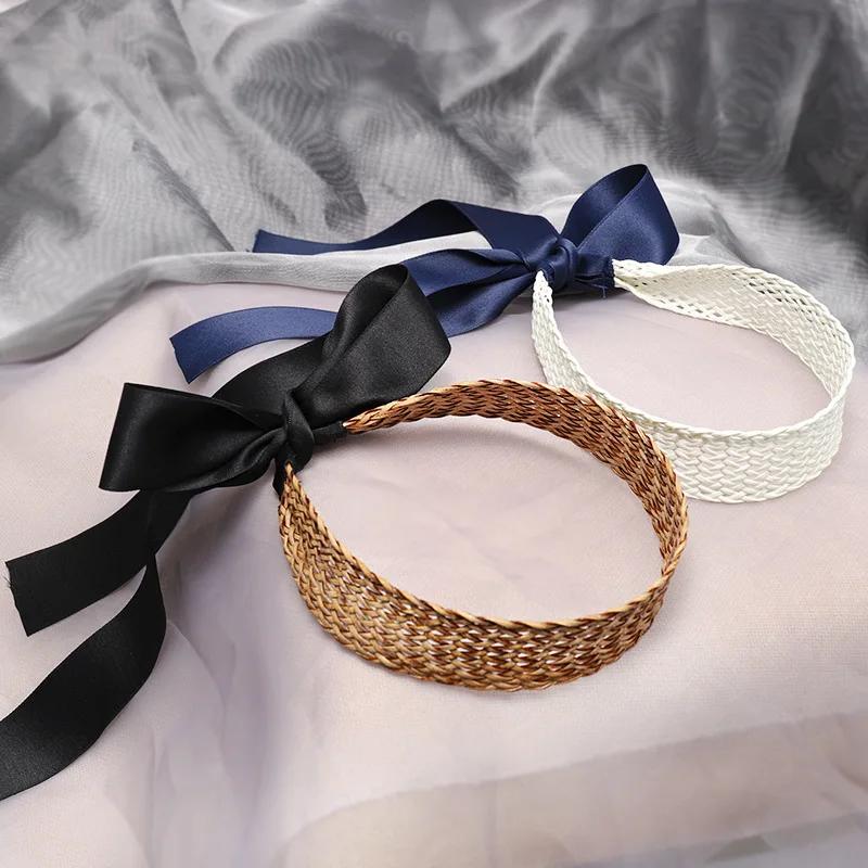 100% новый и высокое качество Тип изделия: ободки для волос Материал: солома Цвет: желтый, белый, черный Стиль: маленький аромат Узор: бант Размер: ширина 7 см Посылка: 1 шт. повязка на голову