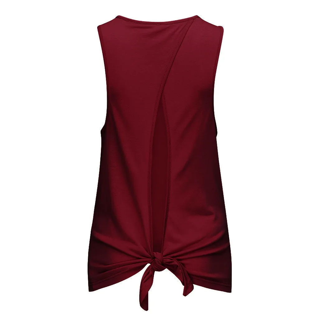 Женские сексуальные спортивные однотонные футболки для йоги с открытой спиной, топы на бретелях с завязками для тренировок