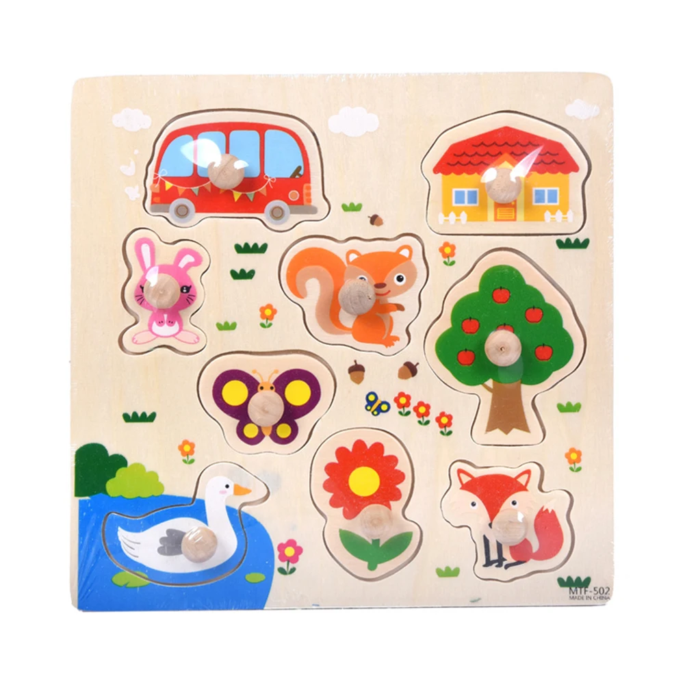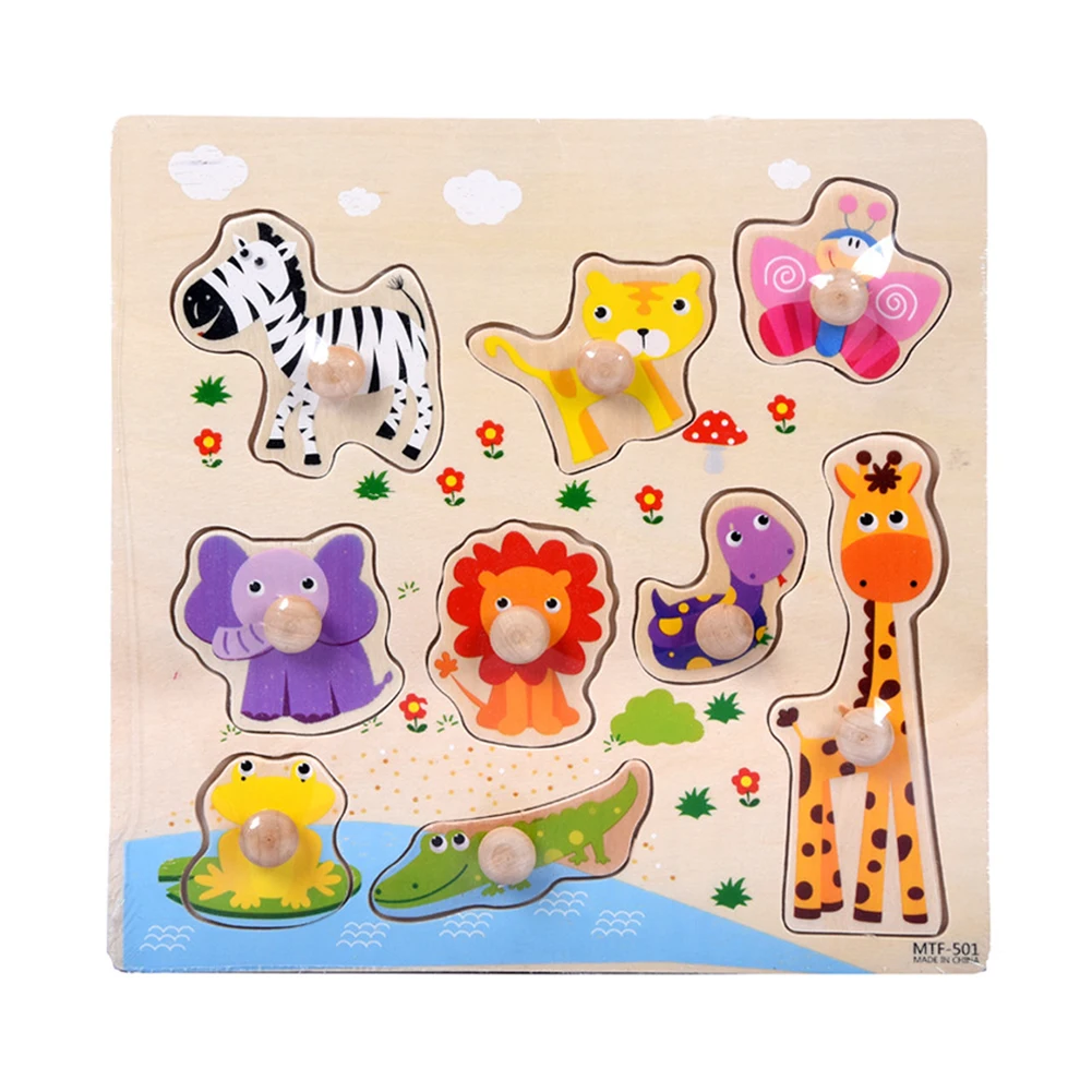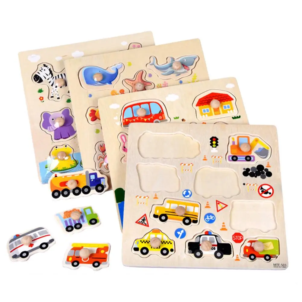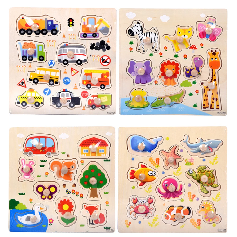 Мультфильм животных автомобиль деревянный Peg головоломки доска для малышей дошкольного возраста образовательные игрушки