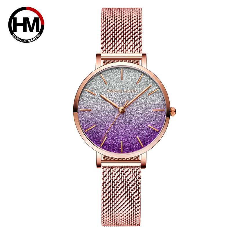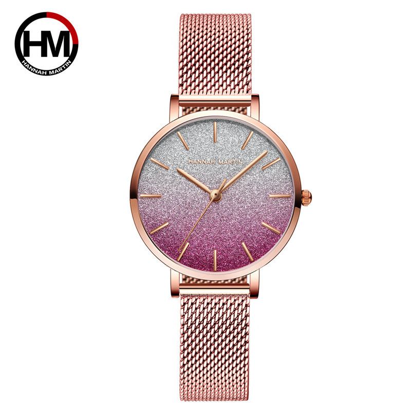HANNAH Martin модные роскошные кварцевые женские часы японский механизм водонепроницаемый градиент цвета циферблат ремешок из нержавеющей стали