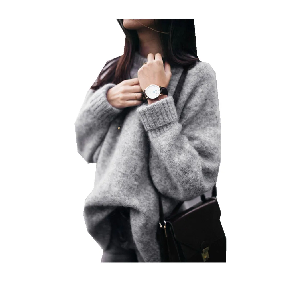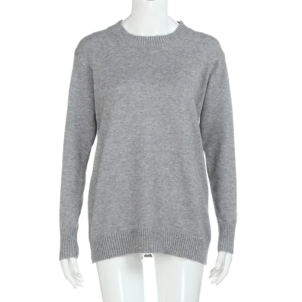 Женский свитер с длинным рукавом, повседневный свободный трикотажный пуловер
