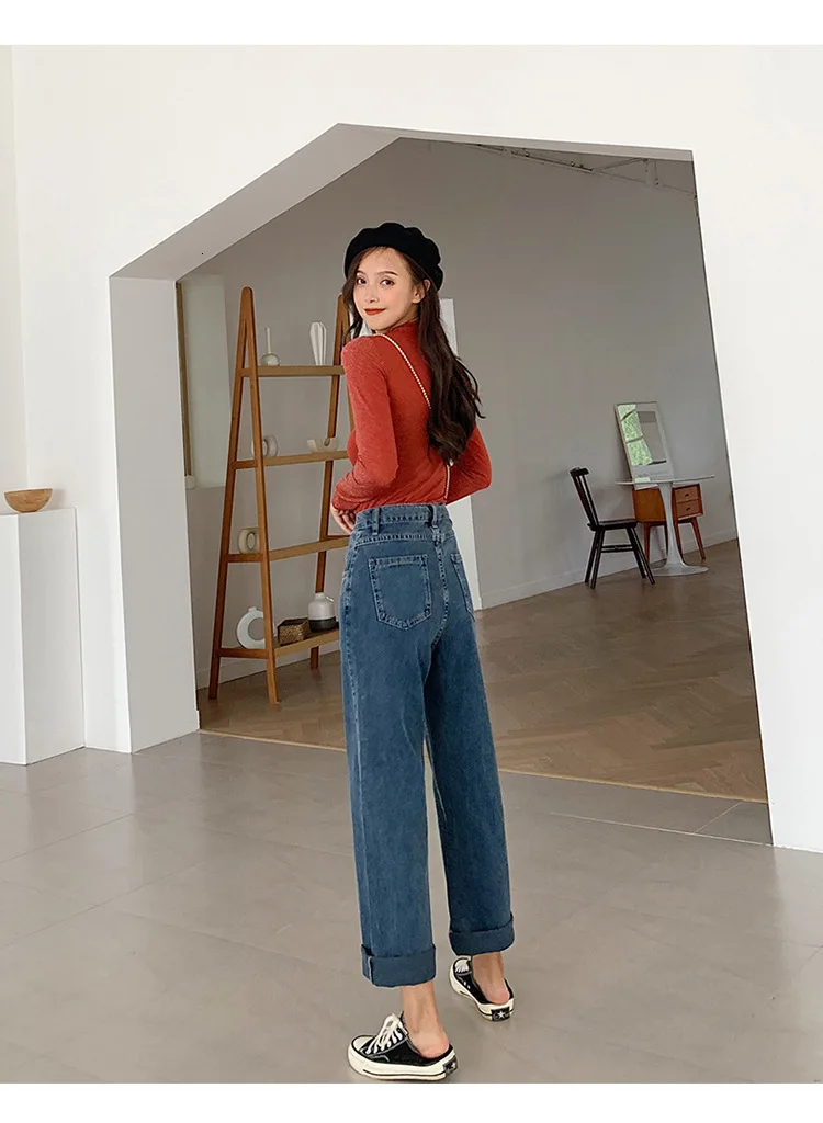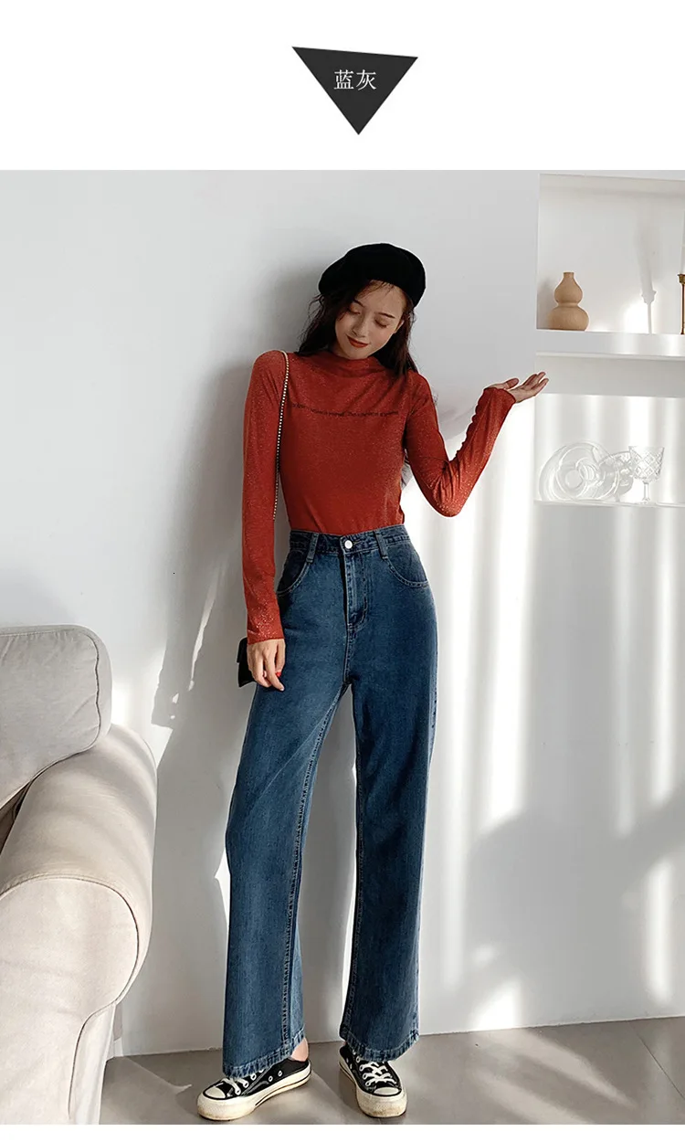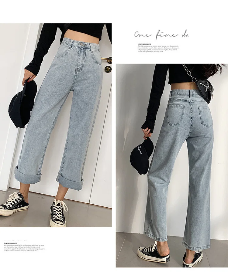 Повседневные винтажные джинсы #3158 женские с высокой талией и широкими штанинами