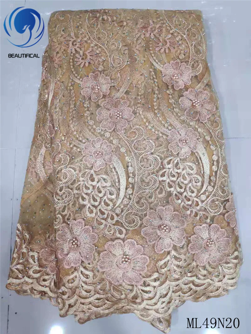 Красивые нигерийские Свадебные кружевные камни и бусины, французская вышивка, кружевное Сетчатое кружевное платье в африканском стиле ML49N20