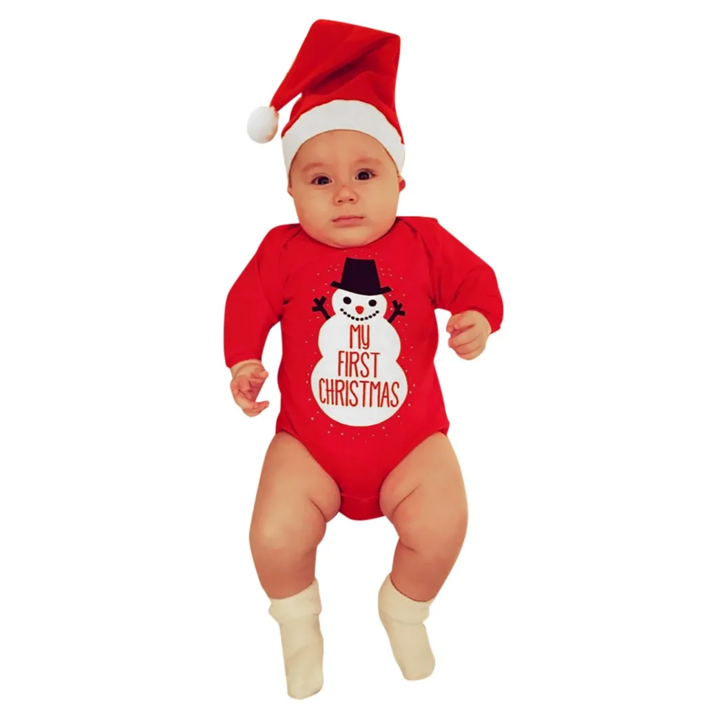 Рождественский детский комбинезон с рисунком снеговика + шапочка, комплект одежды, костюм