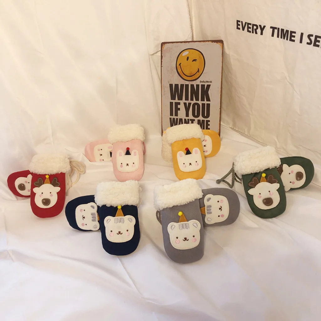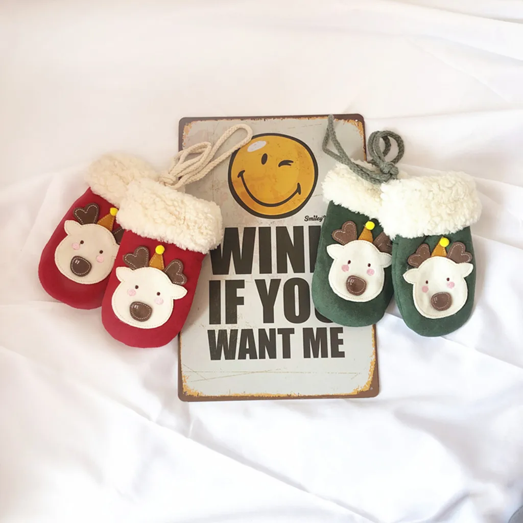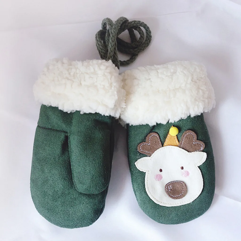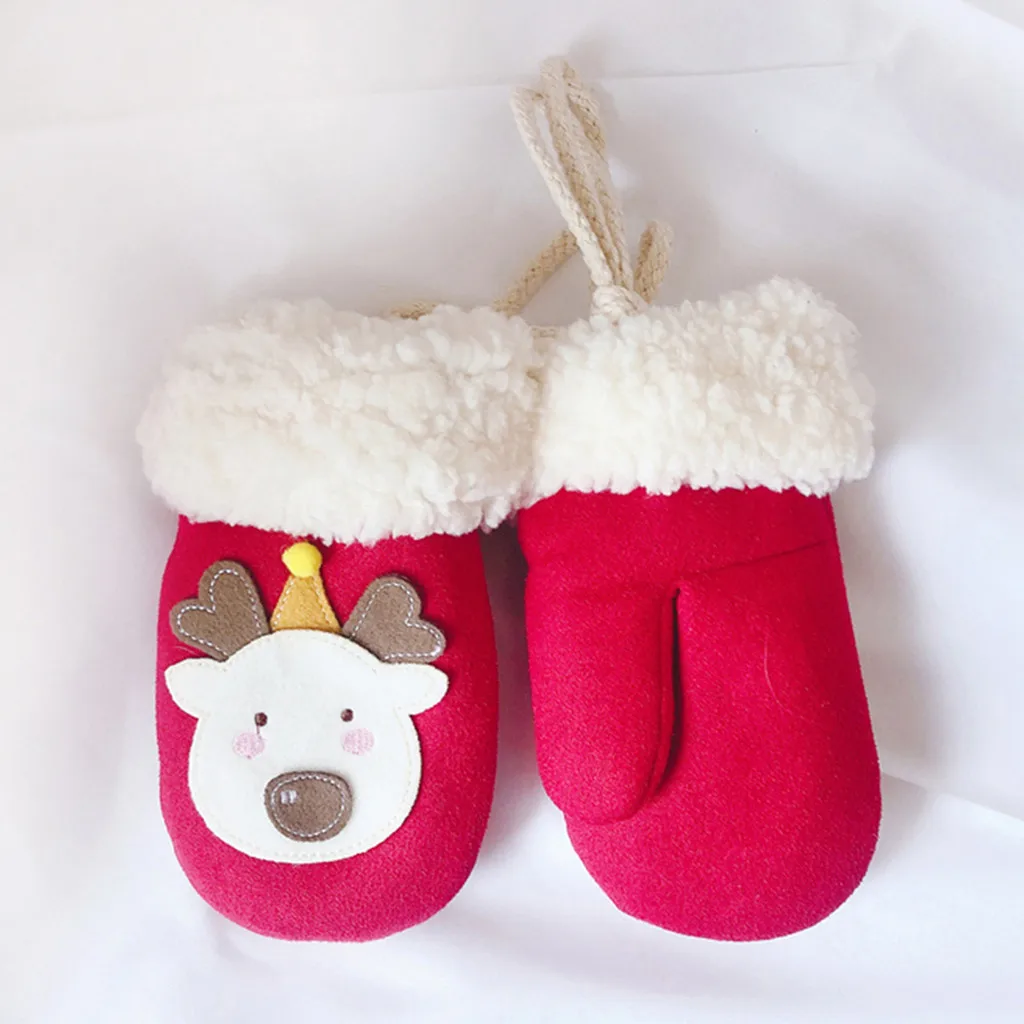Toddler Baby Thicken Christmas Cartoon Full Finger Warm Knitted Mittens Gloves