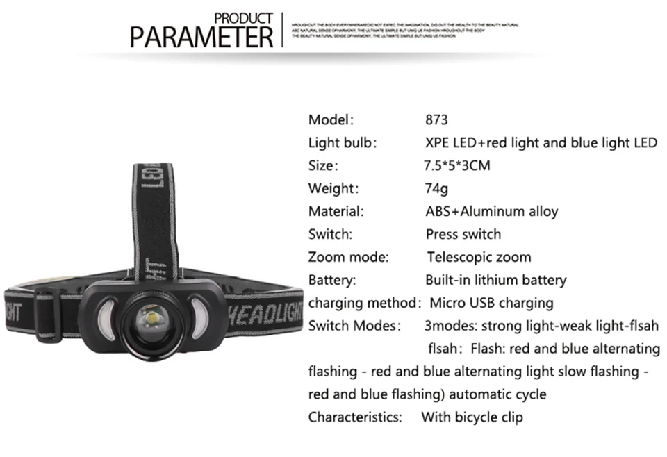 Модель светодиодный: 1 * Q5 + 1 * красный + 1 * синий
