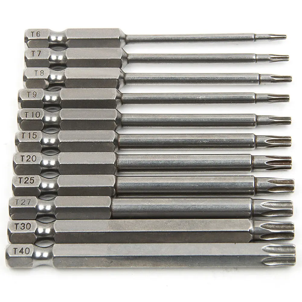 *11pcs/Set 75mm Magnetic S2 Security 1/4'' Hex Torx Head Screwdriver Bits Drill