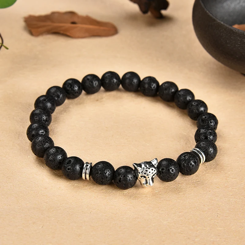 KAMAF модный очаровательный браслет с тигровым глазом для влюбленных, классический черно-белый браслет из натурального бусина из лавового камня для мужчин и женщин