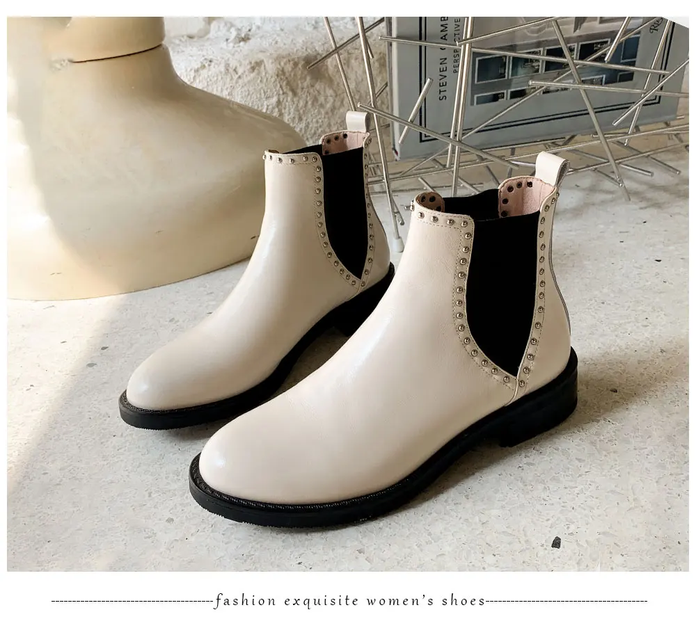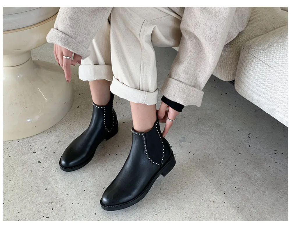 ROBESPIERE/женские ботинки; Натуральная кожа; Зимние теплые ботинки «Челси»; Новинка; Ботильоны с металлическим украшением; Женская обувь; B125
