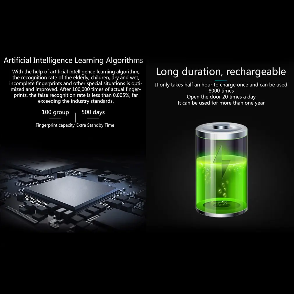 1. Дружественный детям и пожилым людям, ваш палец является ключом, который не позволяет вору взломать код. Не беспокойтесь о потере ключа или пароль известен вору, потому что он не может получить ваш палец.