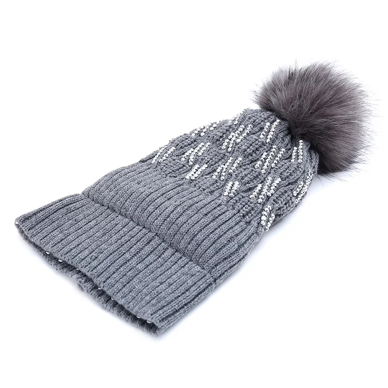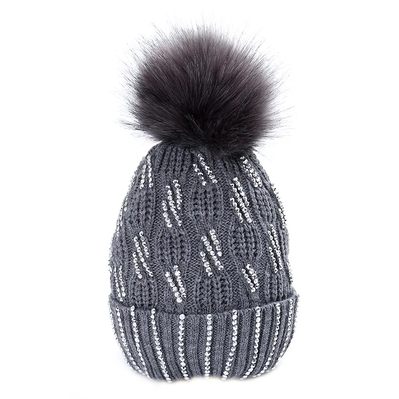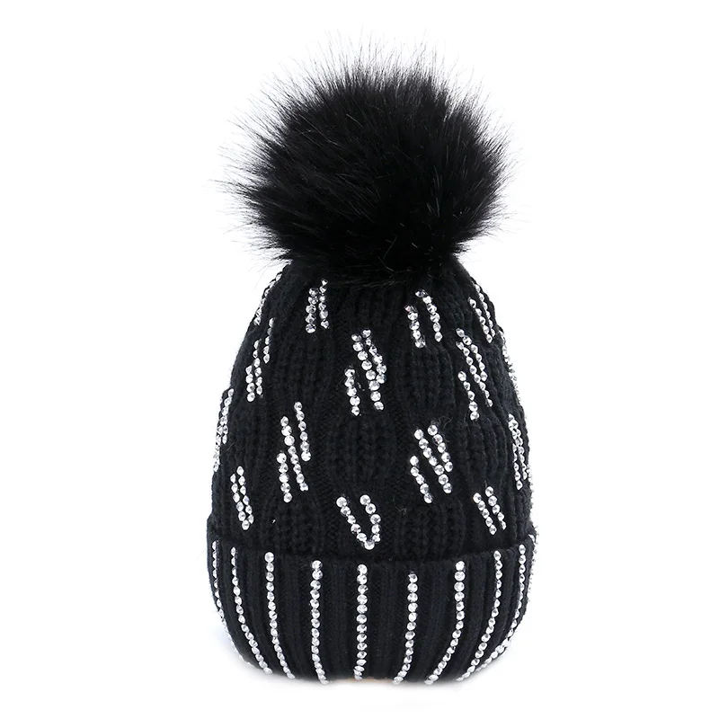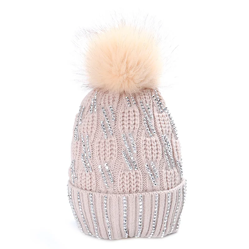 Женская Гламурная зимняя шапка в полоску, хлопковая вязаная модная зимняя теплая регулируемая крышка, мягкая Кепка унисекс с помпоном, вязаная шапка