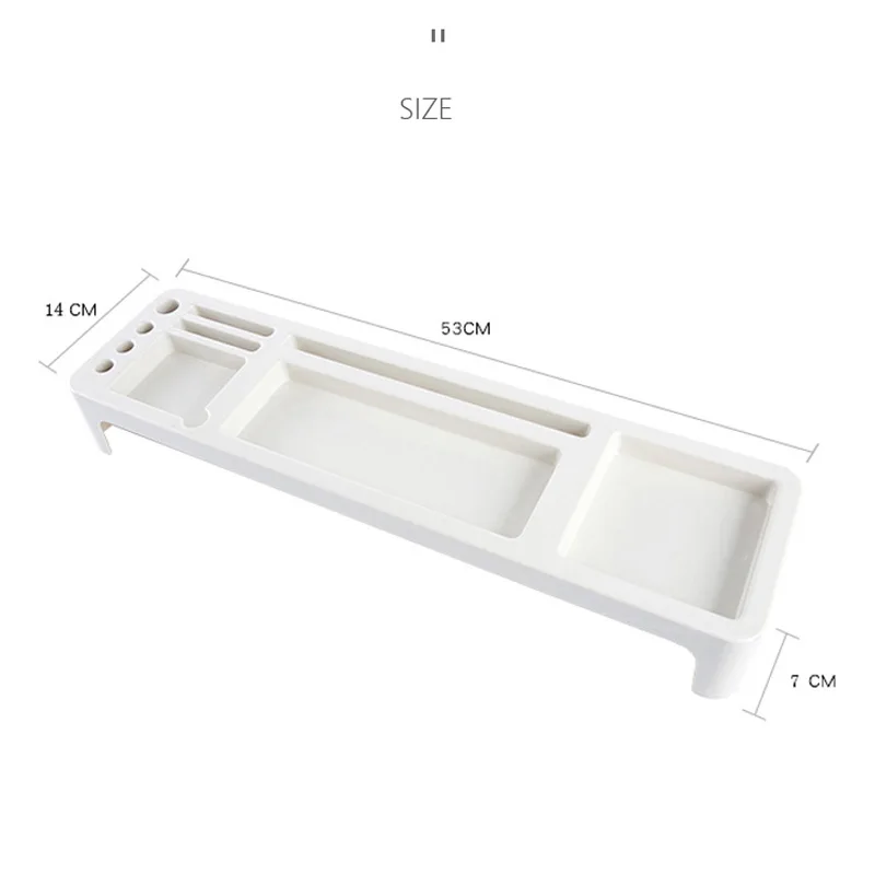 Особенности: Цвет: белый, черный, абрикосовый Материал: PP Получение сценария: получение настольного компьютера Размеры: 53*14*7 см Многофункциональное использование: органайзер для мелочевки с несколькими слотами, делает стол более чистым и экономит пространство 🌷Подходит для домов и офисов-обучения, обучения, спальных мест, детей, использующих компьютеры в комнатах или школьных классах и сохраняя их чистым и широко используемым.
