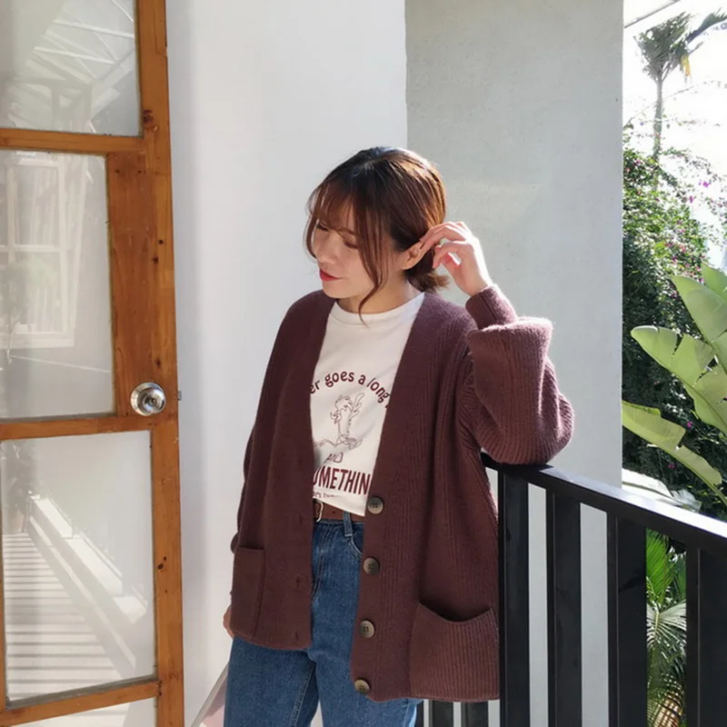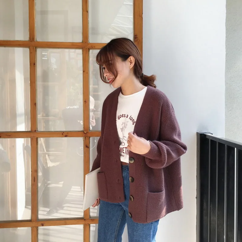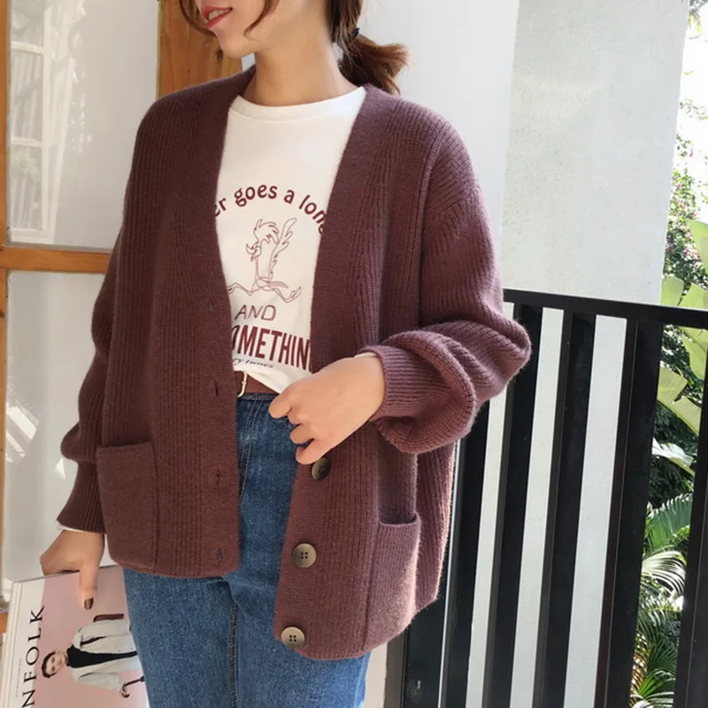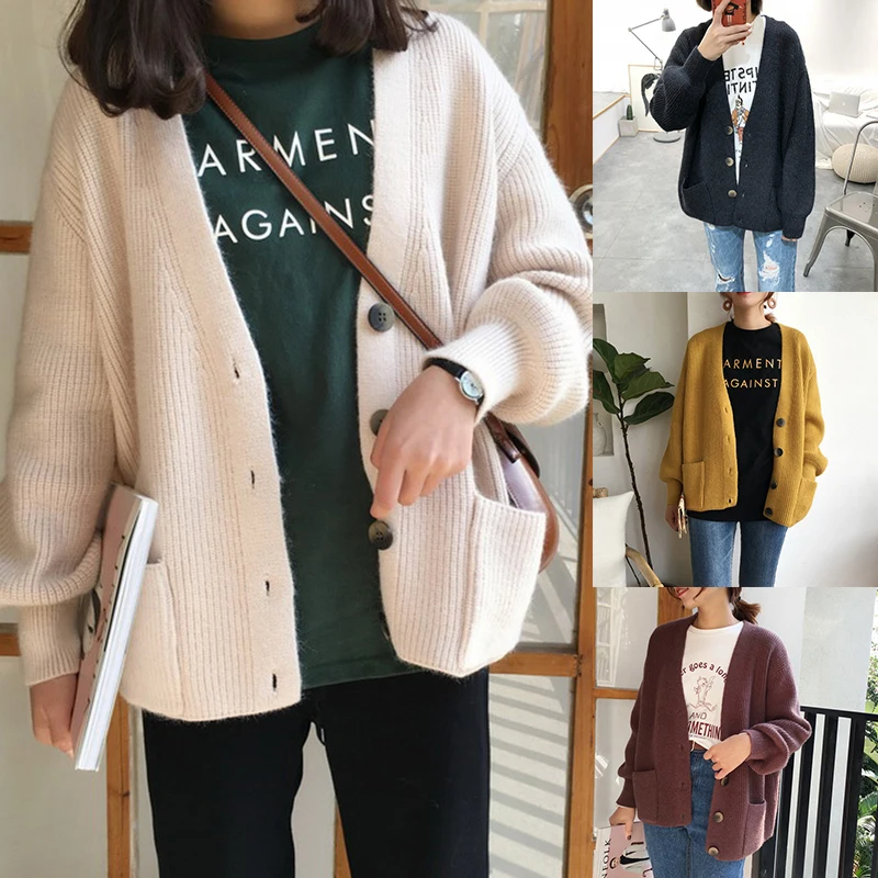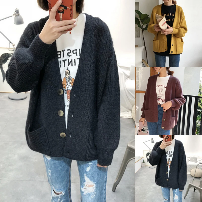 Coat & Jacket Women Fashion Solid Color Sweater Coat 2019 New Ladies Loose Single Breasted Knitted Cardigans Casual Autumn Winter Warm Outwear |