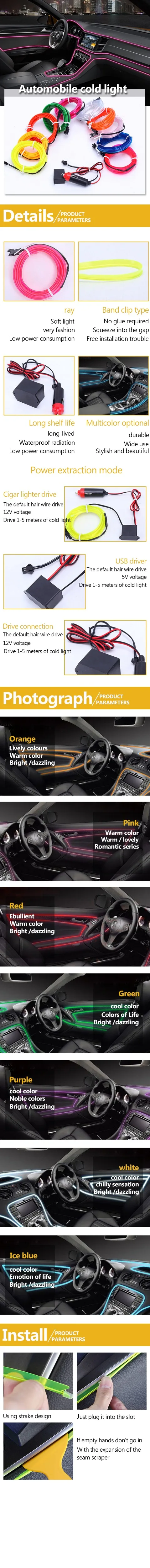 5M Car LED Cold lights Flexible Neon EL Wire Auto Lamps on Car Cold Light Strips Line Interior Decoration Strips