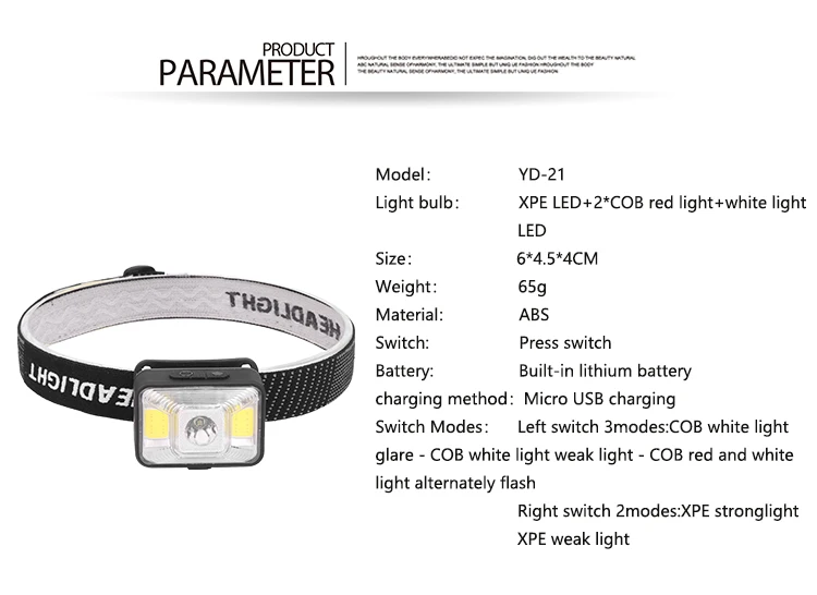 Режимы переключения: 3 режима (COB белый светильник с бликом/COB белый светильник слабый светильник/COB красный и белый светильник поочередно мигает)