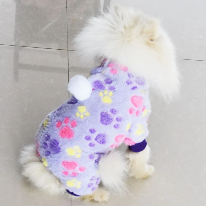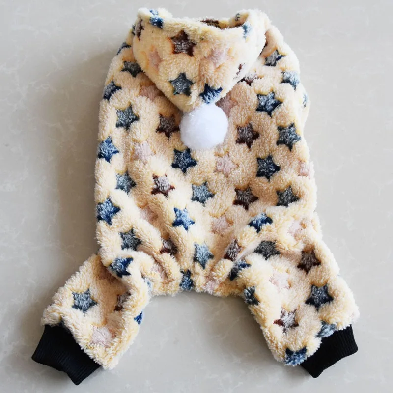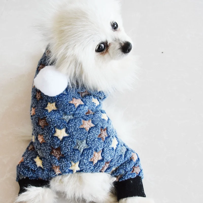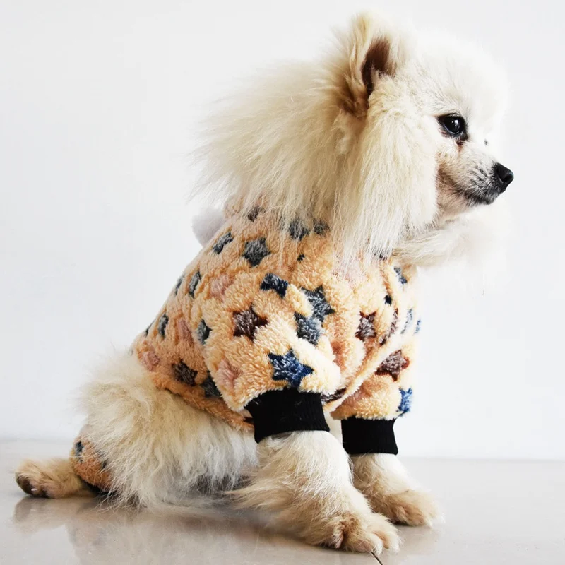 Cute Star Paw Print Warm Winter Pet Coat Thicken Dog Cat Clothes Overalls Coral Velvet for Small Medium Dogs Cats Chihuahua