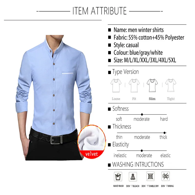 Название брендаBROWONНомер моделиwinter shirtМатериалПолиэфирное волокноМатериалХлопокПолМужчиныСтильНа каждый деньФактура тканиВ рубчикТип товараРубашкиДлина рукаваПолныйВид застежкиОднобортный Тип рисункаСплошнойТип рукаваСтандартнаяТип рубашекПовседневные рубашкиВоротникВоротник-стойкаЕдиница измерения100000015Количество1item namemen winter shirtmaterial55%cotton+45%polyesterseasonwinter shirttyple versionregular fitealsticitymoderatepatternsolid colorsoftnessmoeratethicknessthicksizeM/L/XL/XXL/XXXL/4XL/5XLcolordark blue/gray/sky blue/white