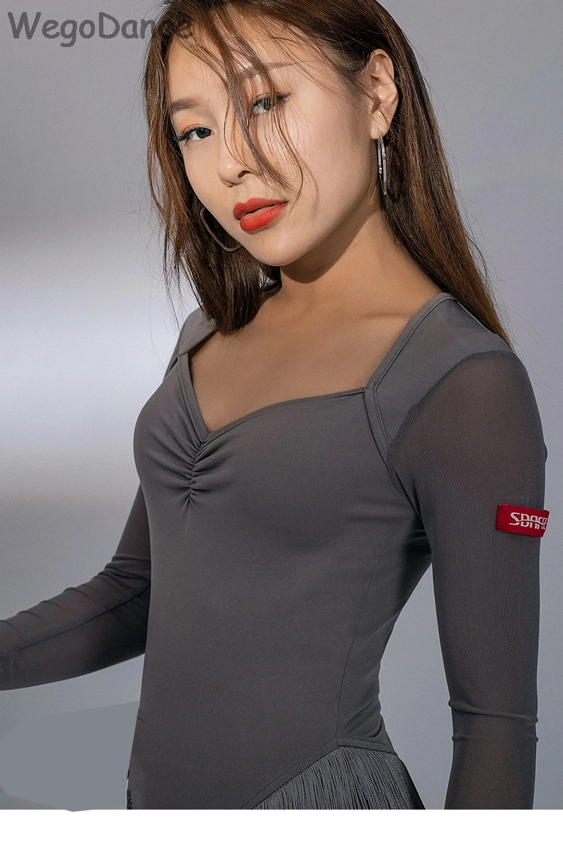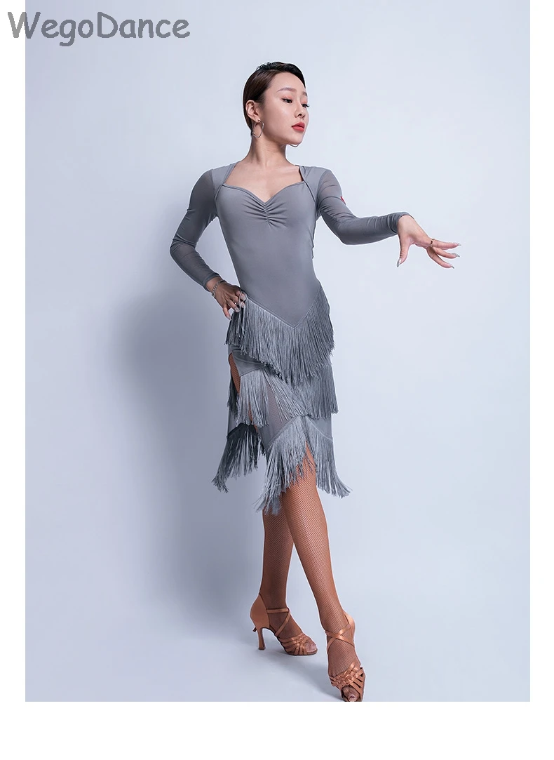 Новинка, платья для соревнований по латиноамериканским танцам, платье с v-образным вырезом, платье для сальсы, обтягивающий костюм для латинских танцев с блестками