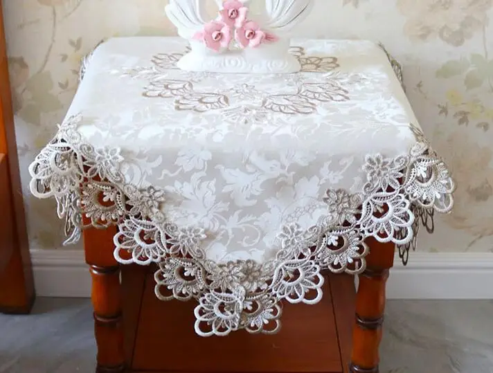Роскошная белая кружевная квадратная скатерть с вышивкой, кухонный чайный журнальный столик, скатерть, обеденная, рождественские, вечерние, свадебные украшения