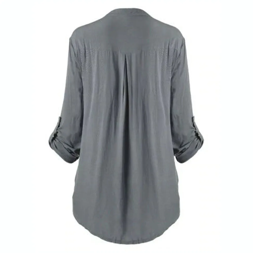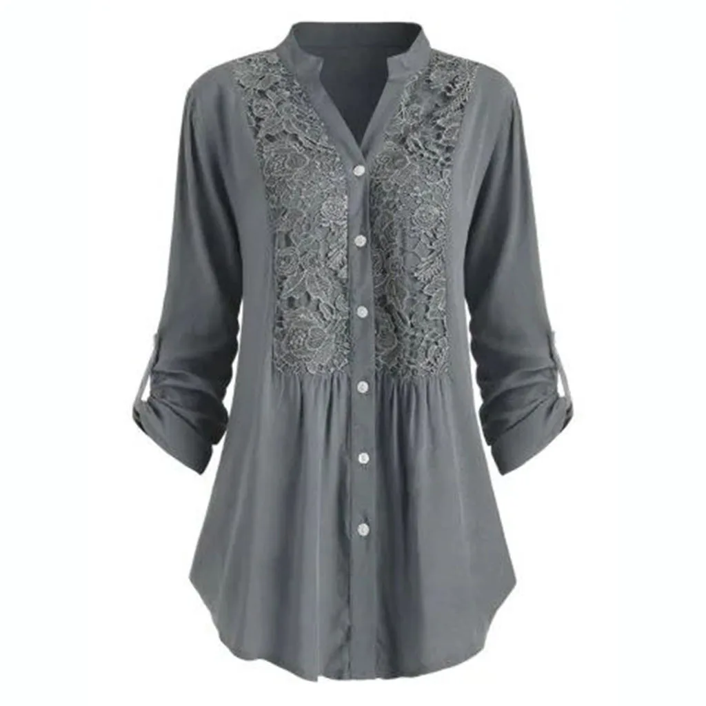 Женская Кружевная блуза на пуговицах, с v-образным вырезом и длинным рукавом, большие размеры