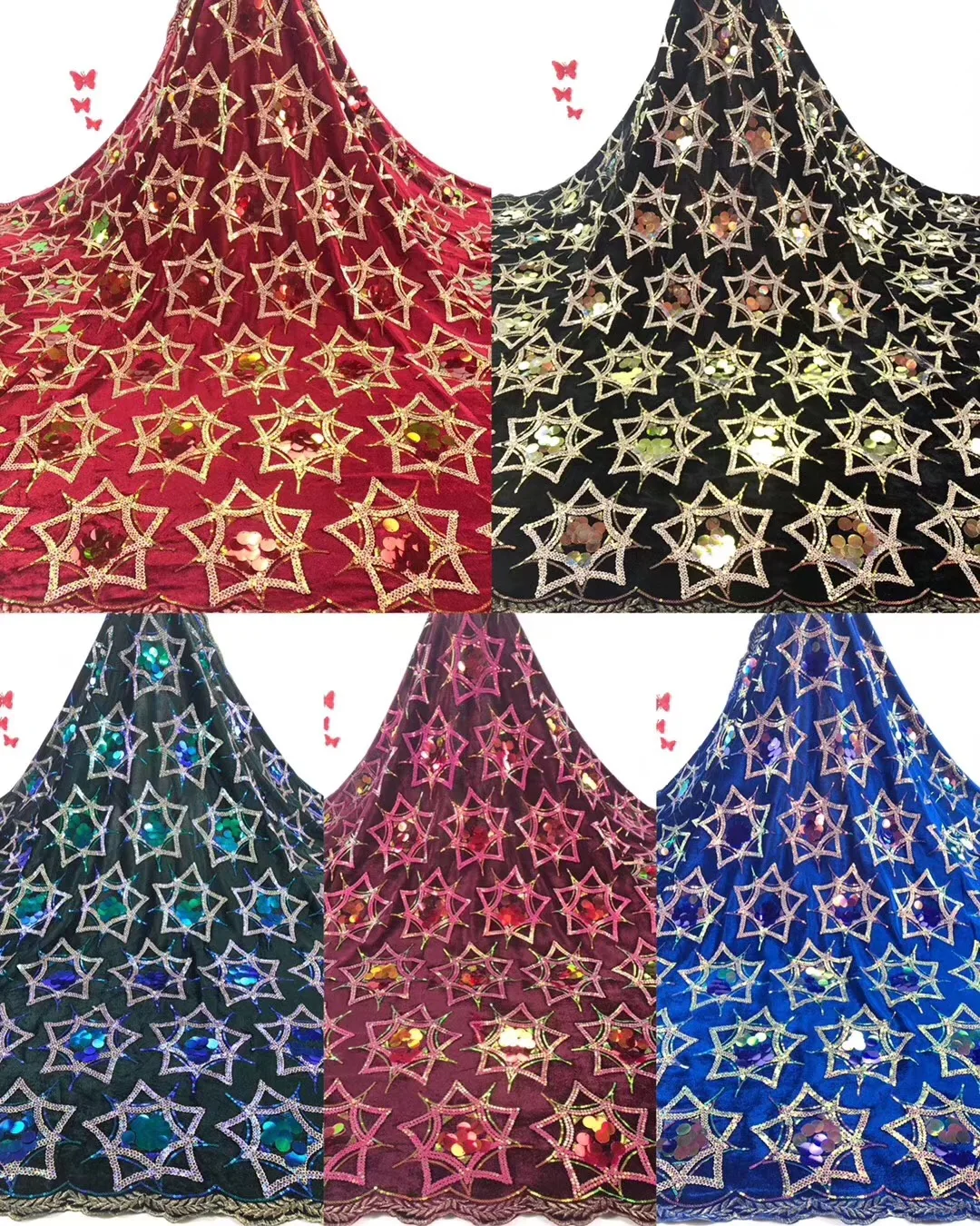 2019 африканская Высококачественная бархатная кружевная ткань с двойными пайетками, французский тюль, материалы для вышивки, 5 ярдов, вечерние платья для свадьбы
