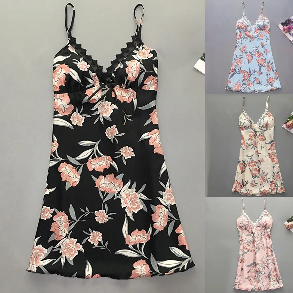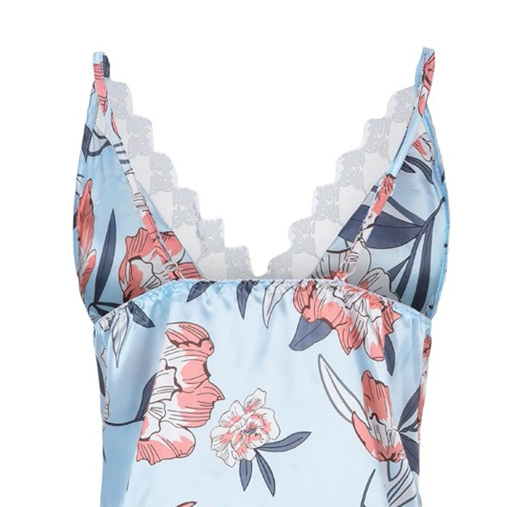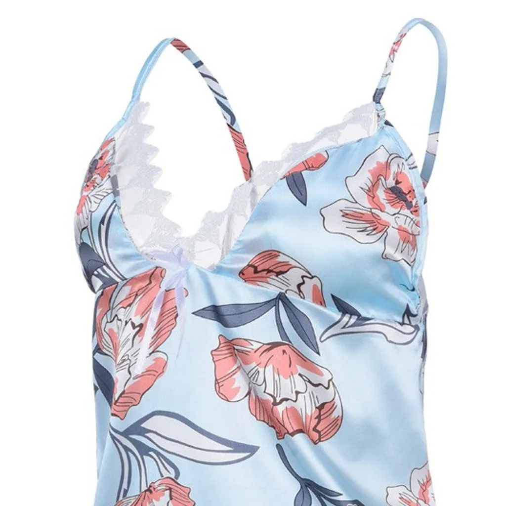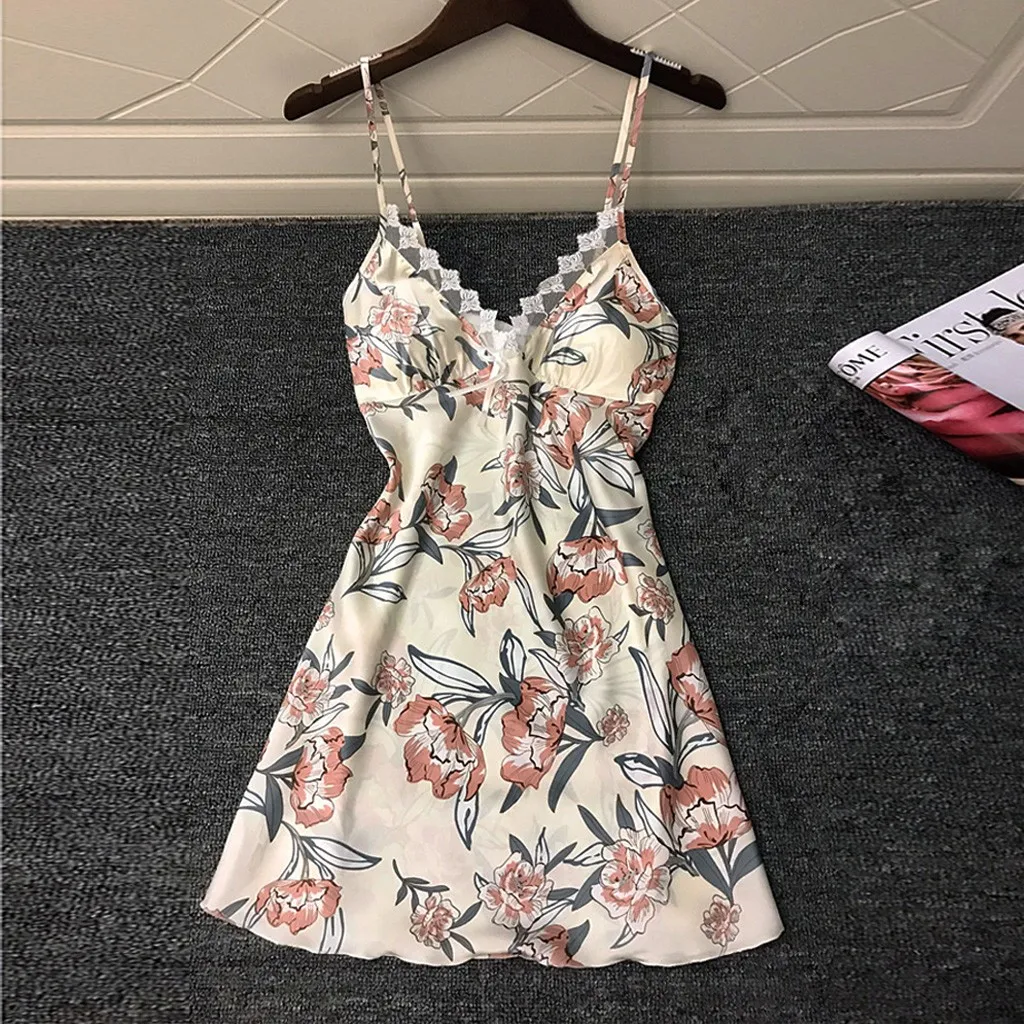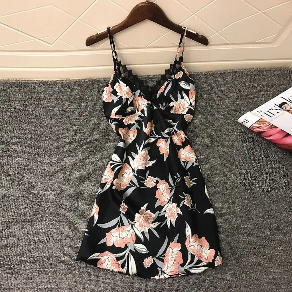 Женское атласное шелковое белье с цветочным принтом и бантом, кружевное атласное платье с принтом, Непрозрачное сексуальное платье, новый стиль 05 *