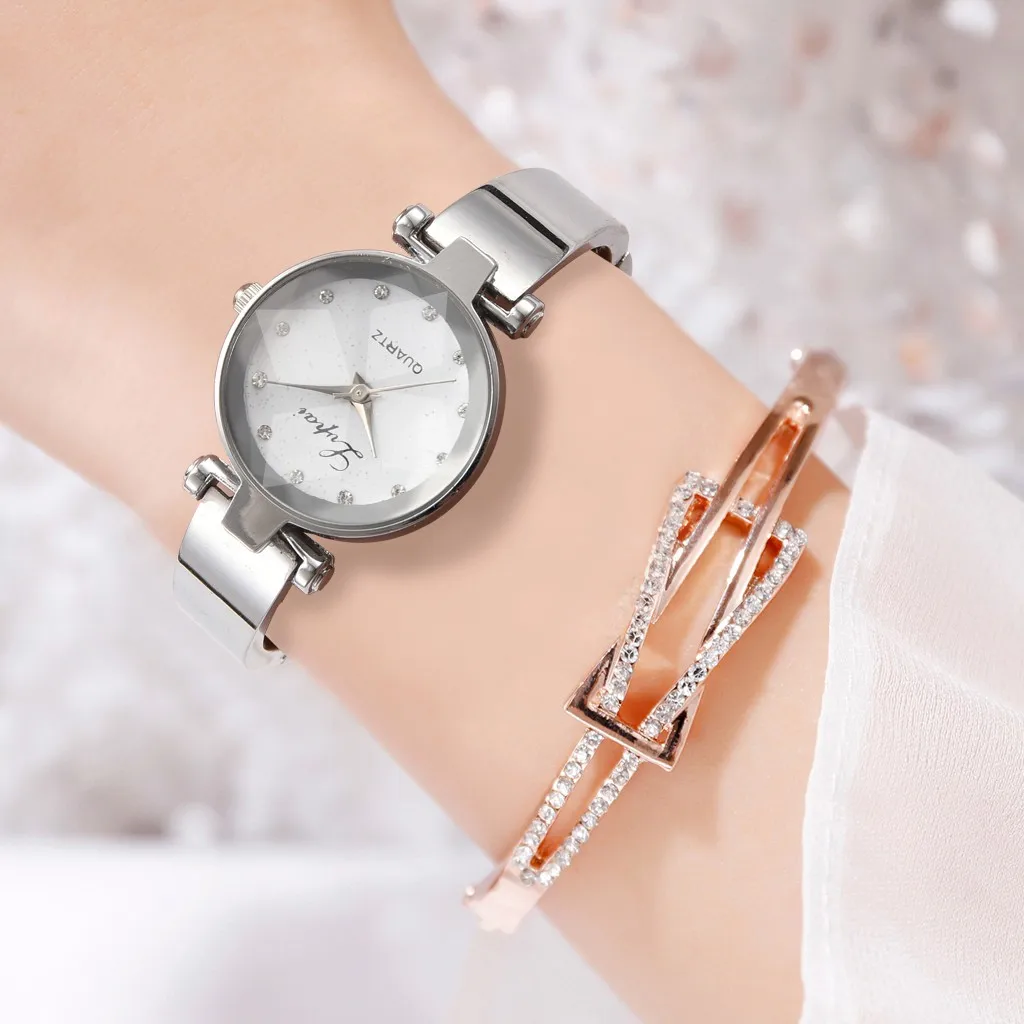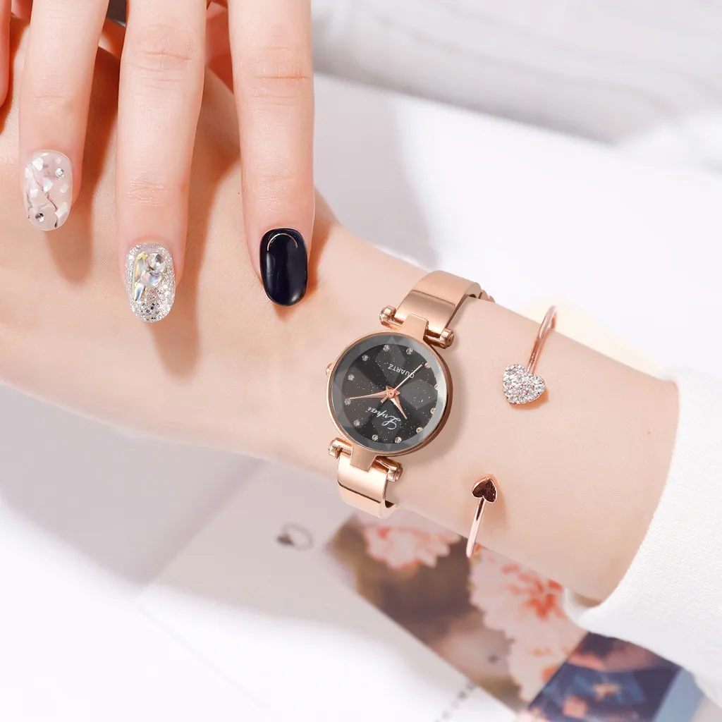 Модные простые часы из нержавеющей стали со стразами и инкрустированными звездами, женские кварцевые часы
