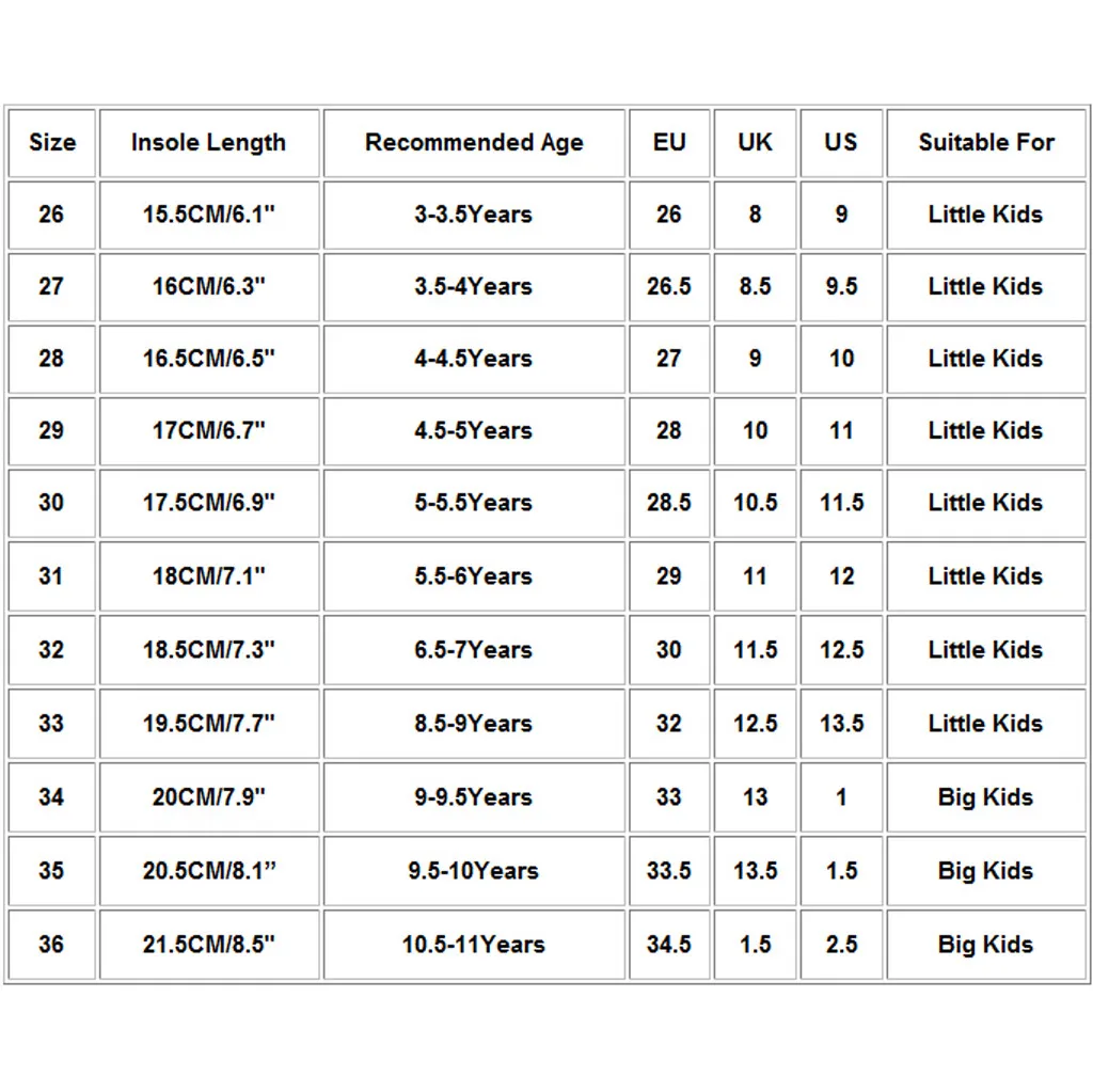 | Размер | Стельки Длина | Рекомендуемый возраст | ЕС | Великобритания | Свяжитесь с нами | Подходит для |