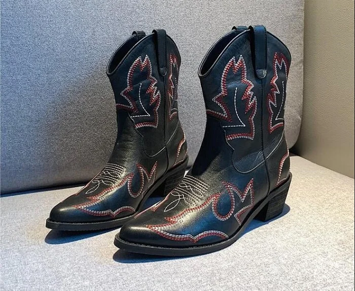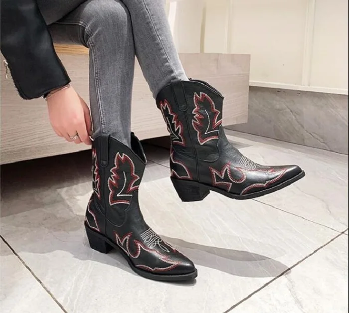 Новые западные сапоги ковбойские сапоги женские laarzen dames chaussures femmes automne hiver кожаные женские сапоги
