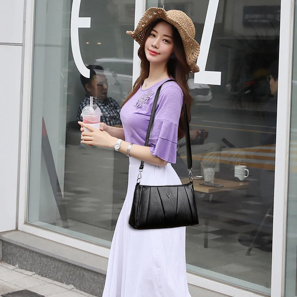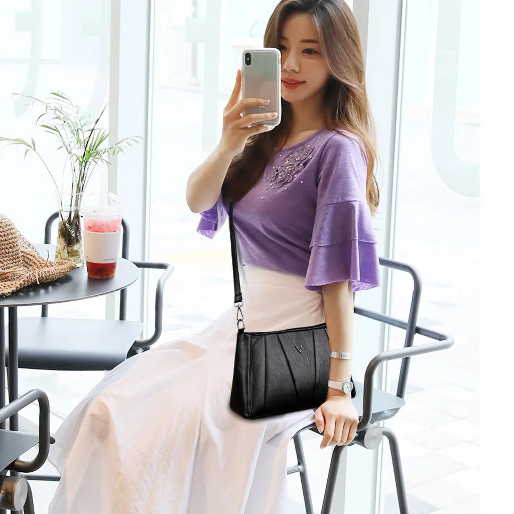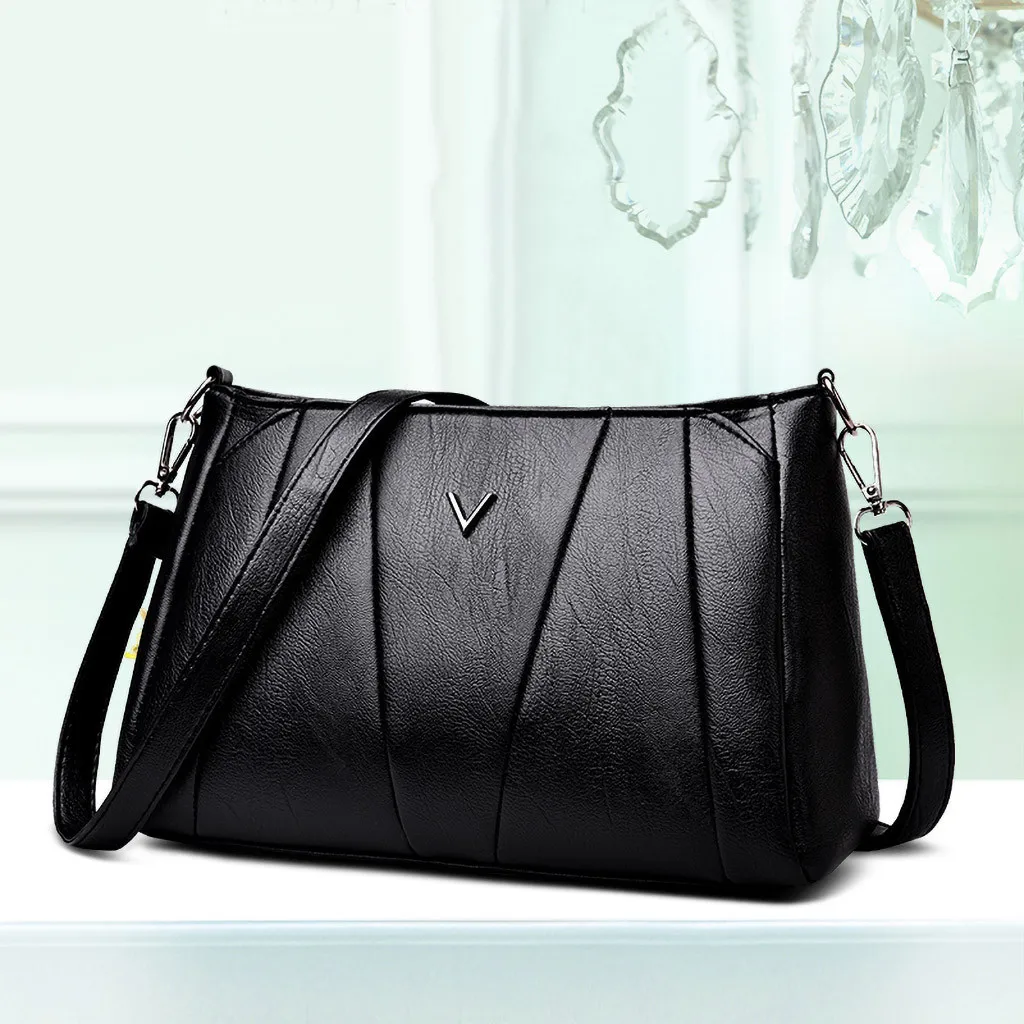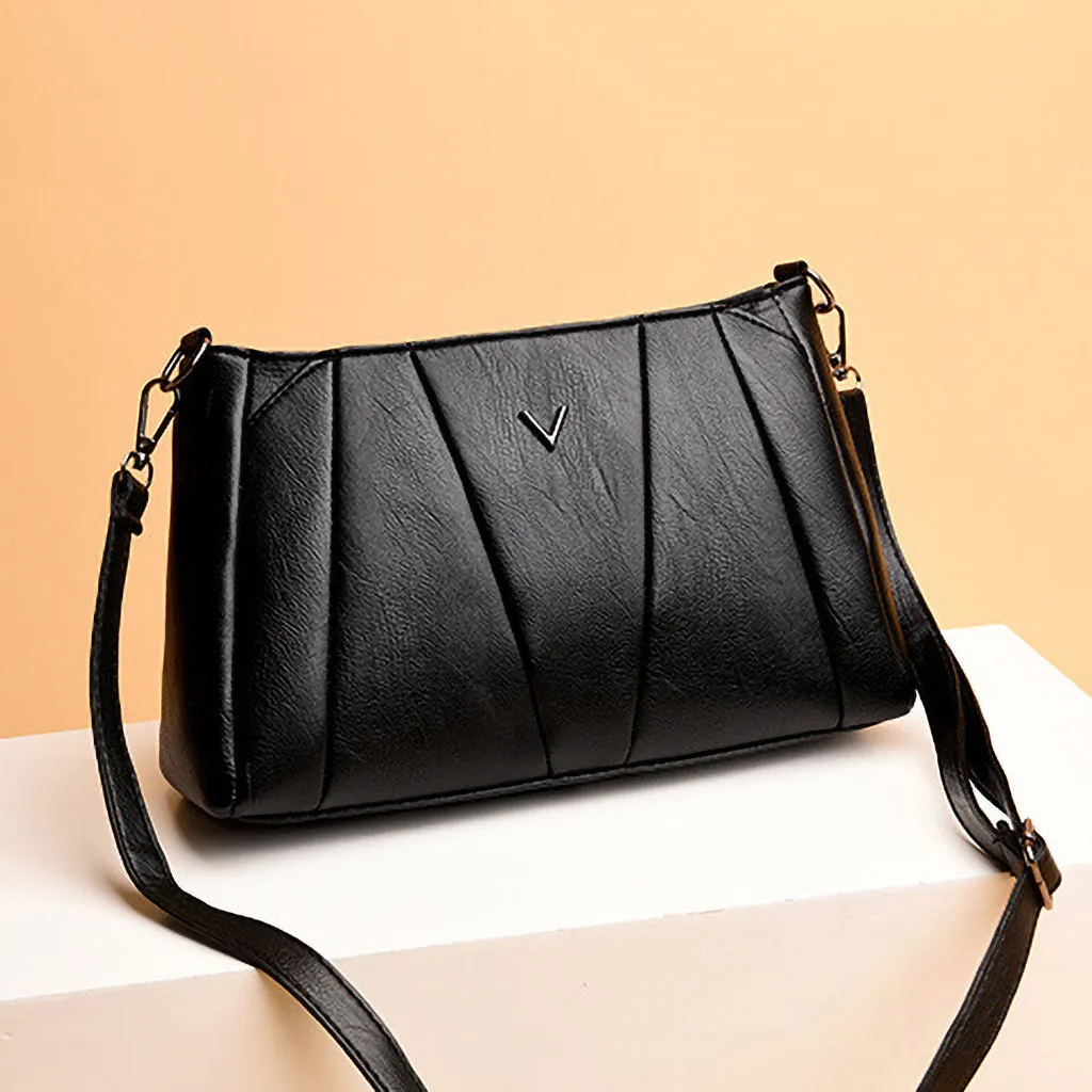 Women Casual Leather Handbag Soft Face Fashion Retro College Soft Leather Bag