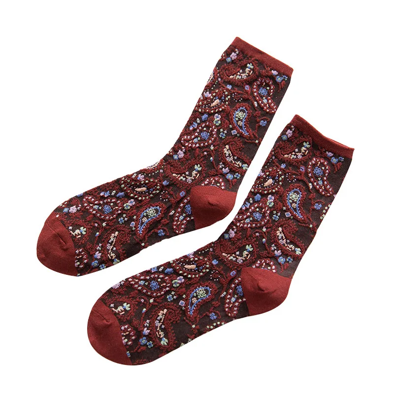 1 пара винтажных носков в этническом стиле, женские теплые носки с принтом, милые японские носки