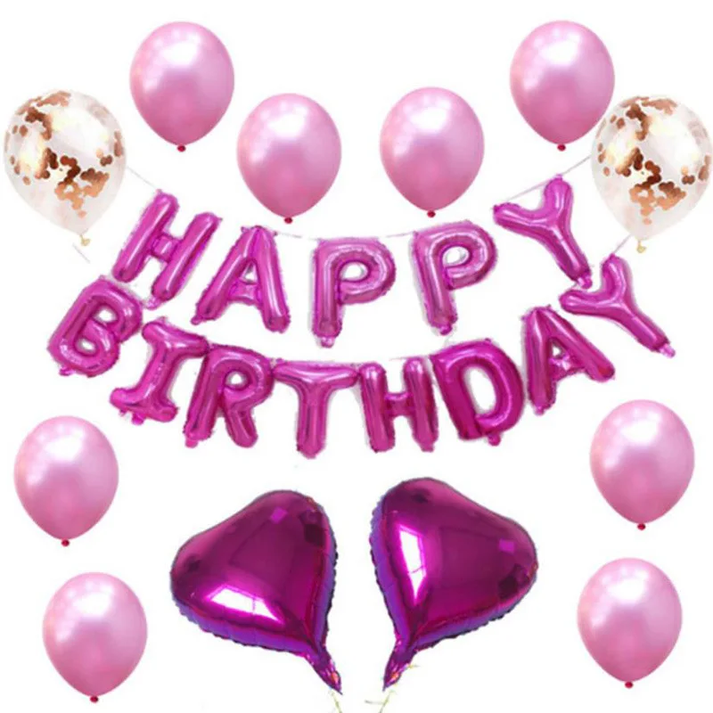 Материал: алюминиевая пленка/фольга, латекс Повод: День детей, вечерние рождения Посылка тация: Розово-красная буква на день рождения * 1 комплект Красное сердце * 2 Розовый латексный шар * 8 Белый шар с золотой крошкой * 2