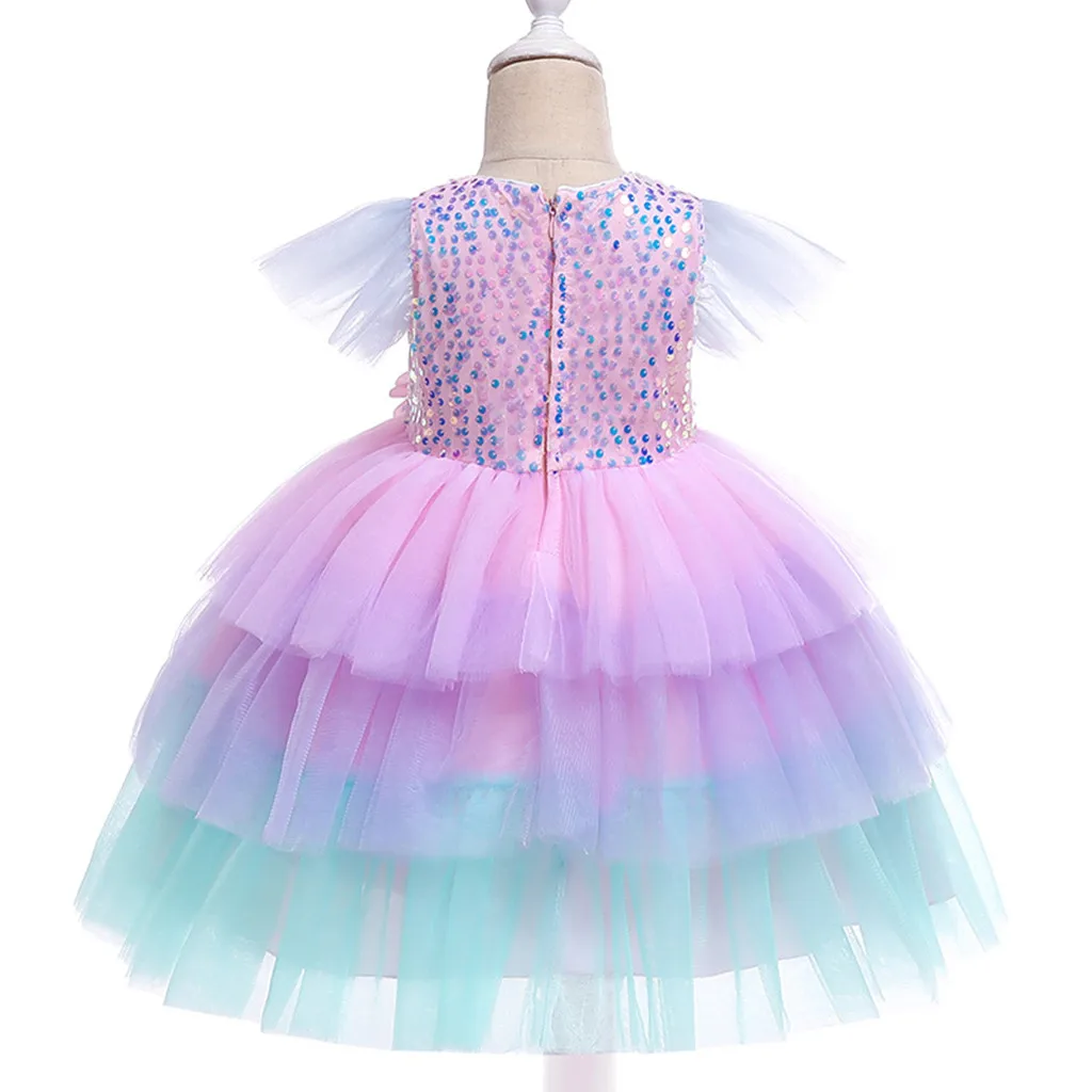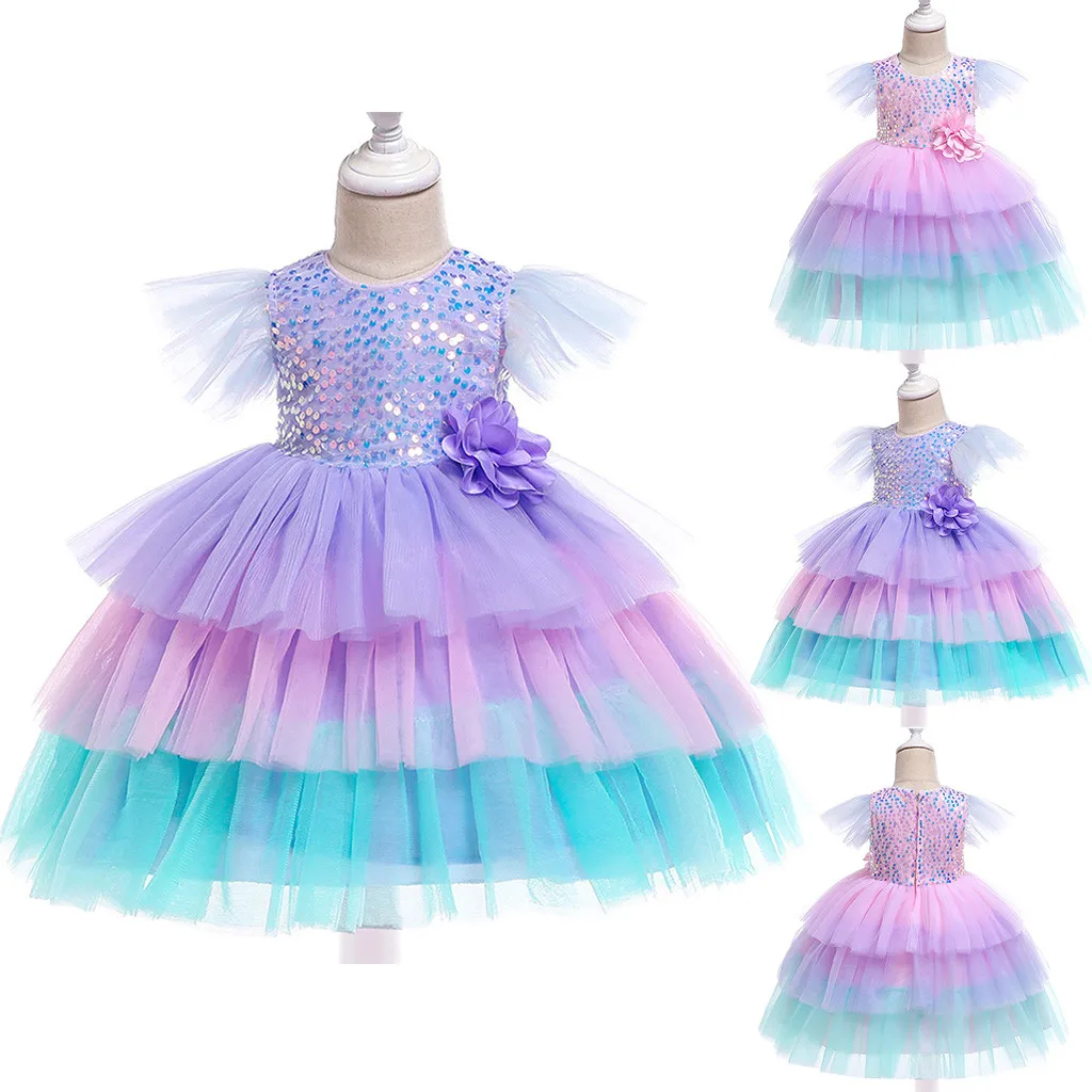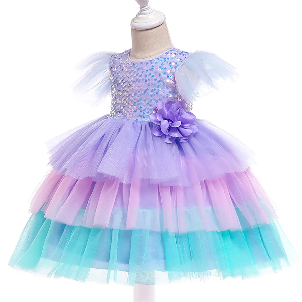 Детское праздничное платье принцессы с блестками для девочек; Платье подружки невесты на День рождения; Свадебное платье