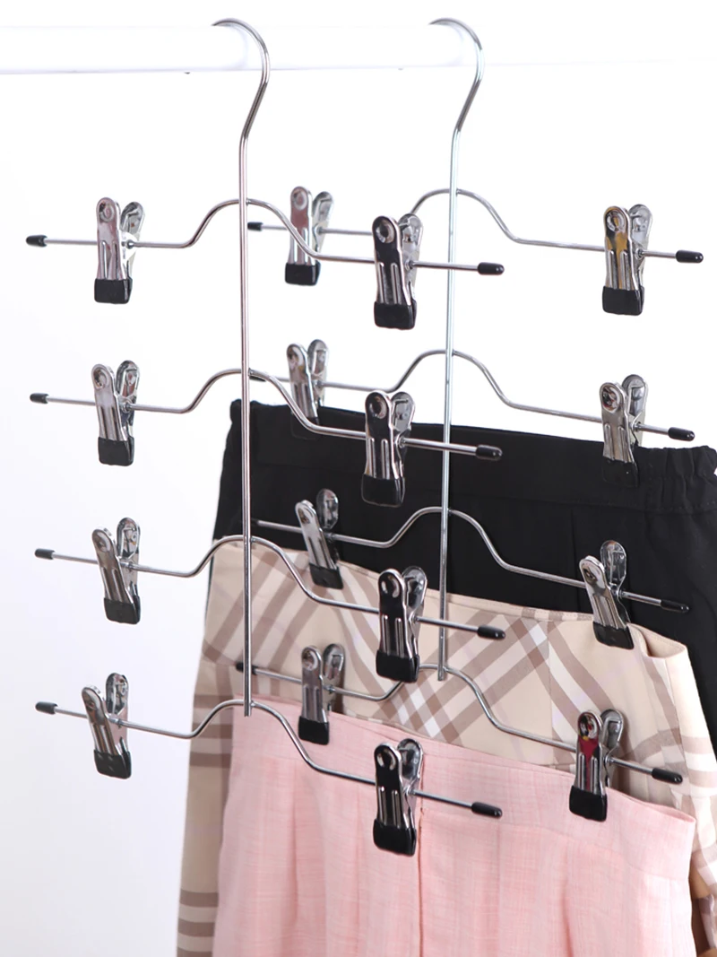 Вешалка для юбки с скользящими металлическими зажимами, очень удобно скользить по зажимам, чтобы соответствовать ширине юбок, слаксов, брюк, джинсов, одежды или шарфа и т. д.