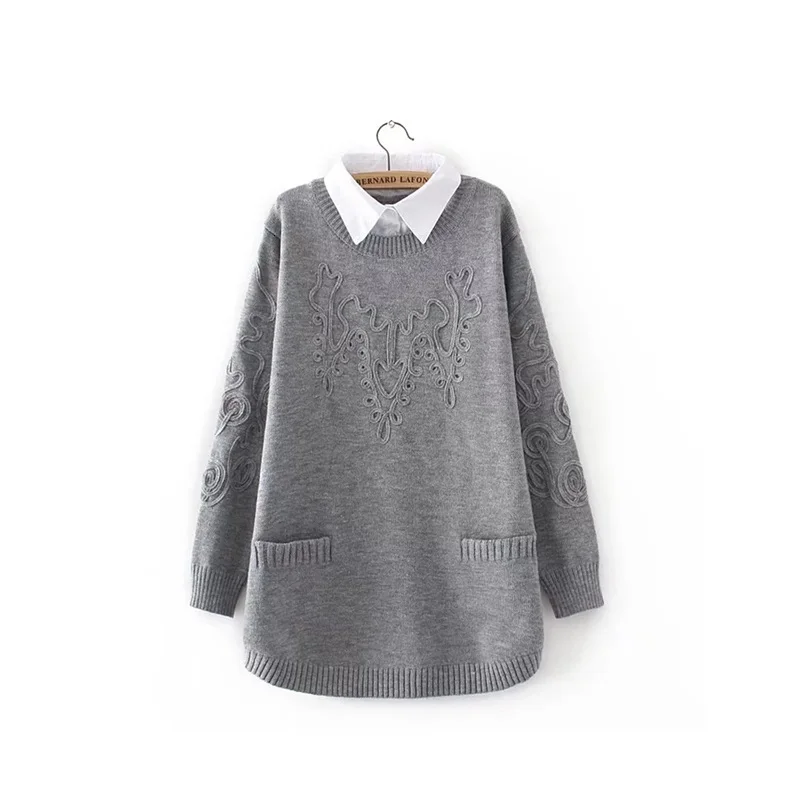 Plus size 4XL Elastische truien breien Herfst Geborduurde vrouwen truien lange mouw dames dark blue & black pull femmeONS $23.99 /Stuk