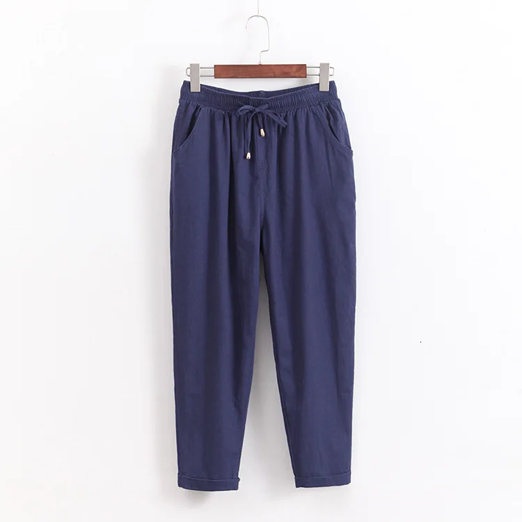Plus size 5xl vrouwen OL katoen linnen hoge taille harembroek boog tie trekkoord elastische taille zakken casual broek pantalonesONS $9.35/Stuk