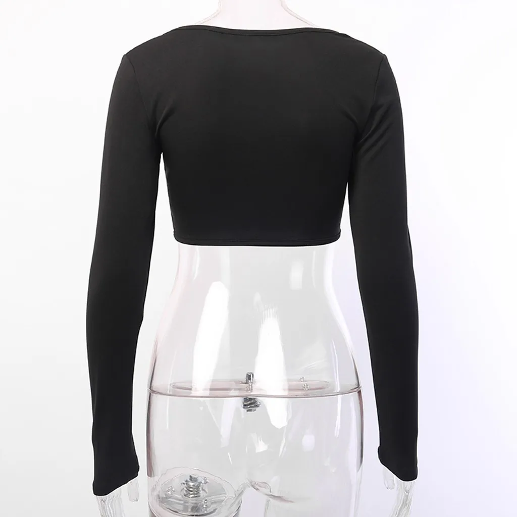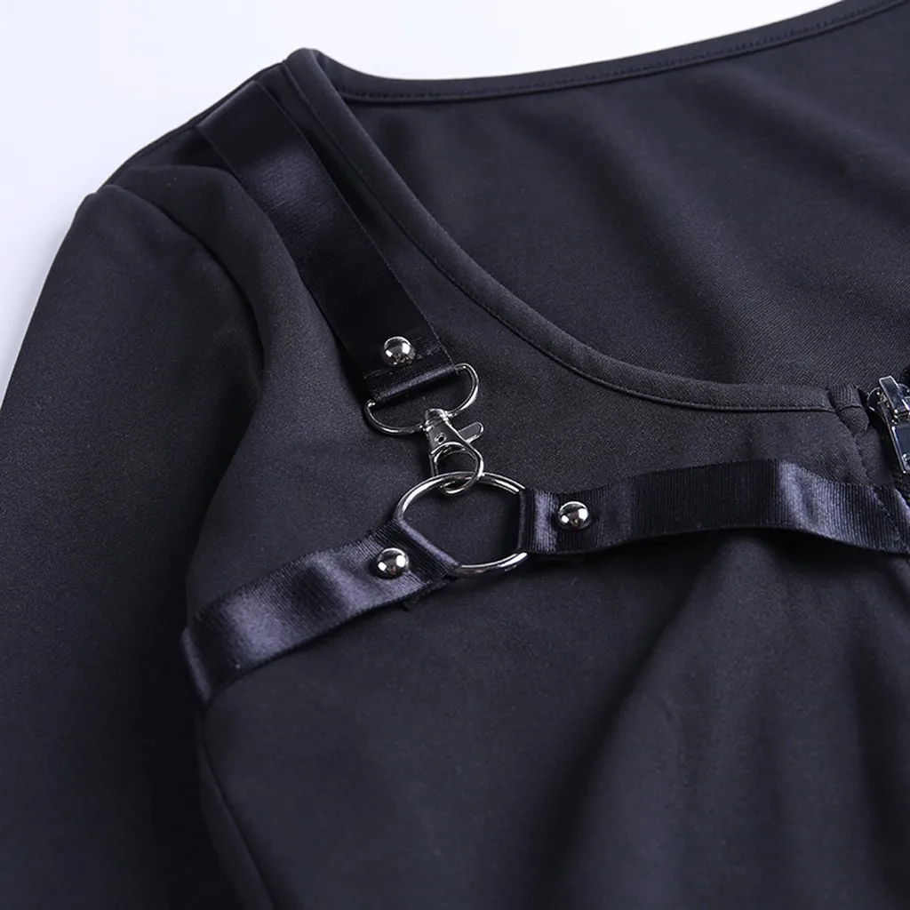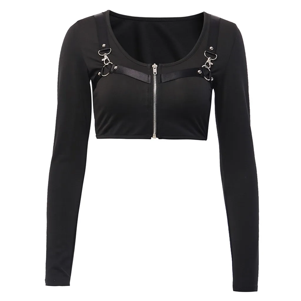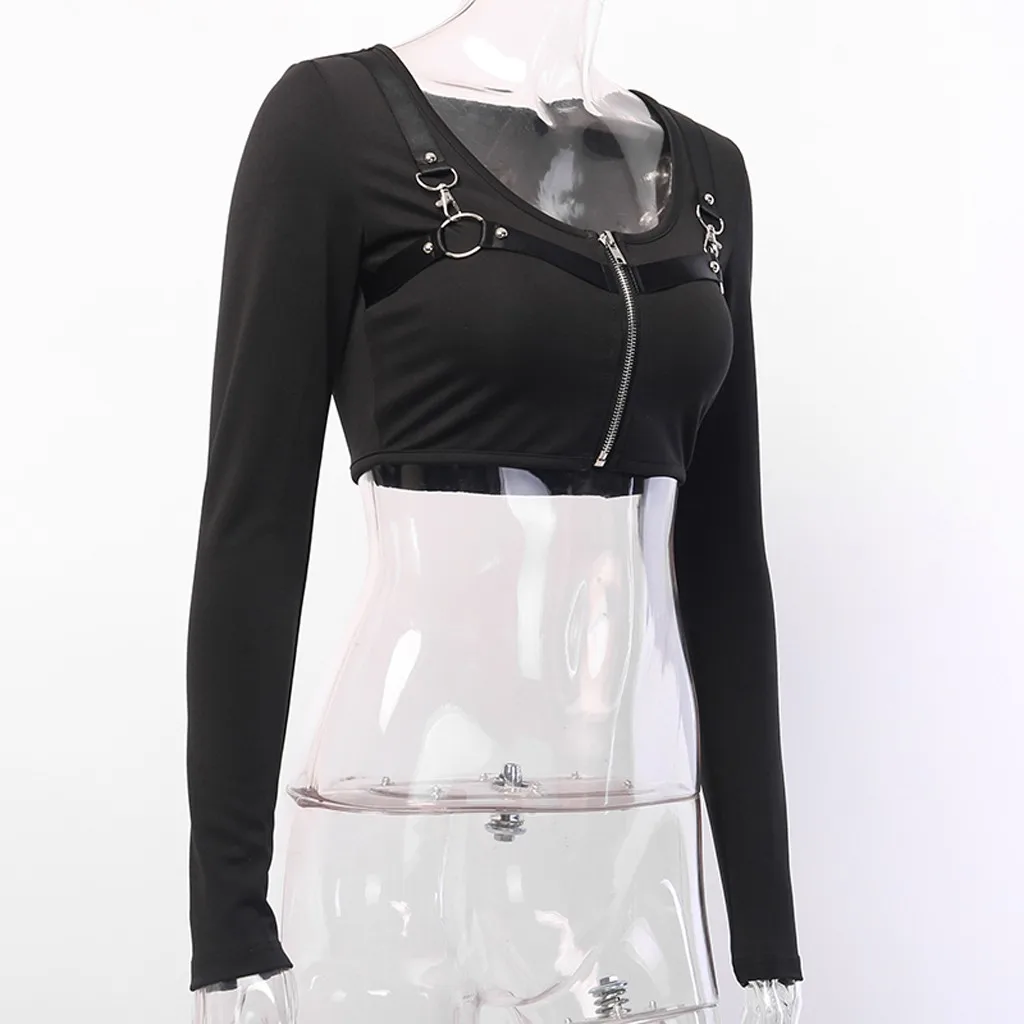 Модные женские облегающие Топы в стиле панк с длинным рукавом и v-образным вырезом на молнии