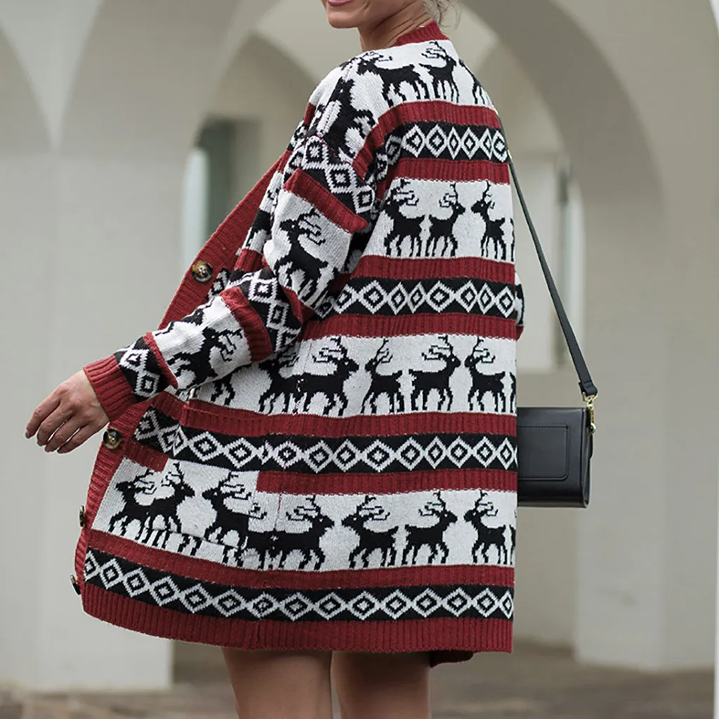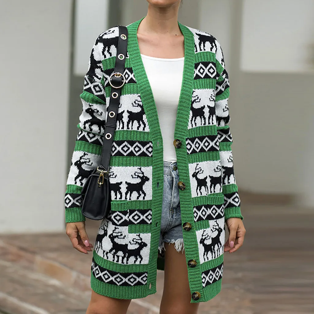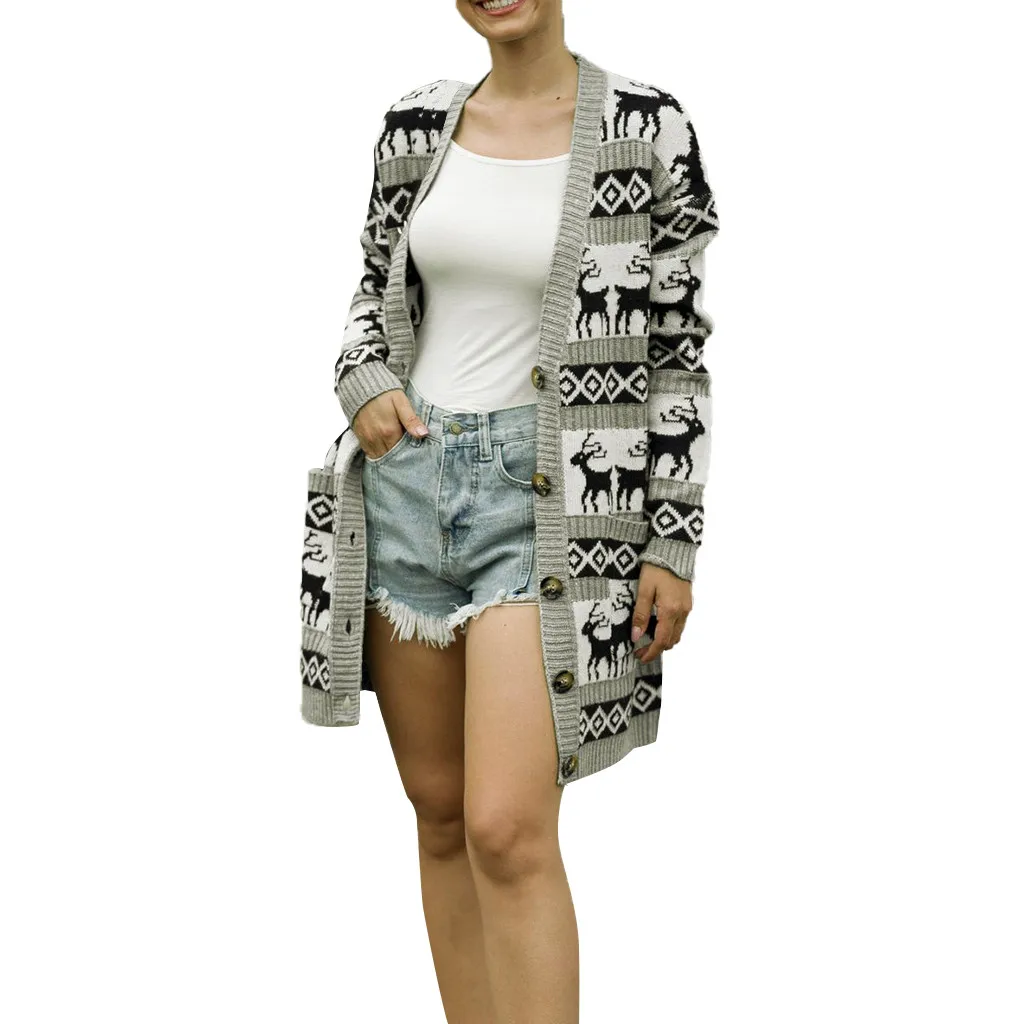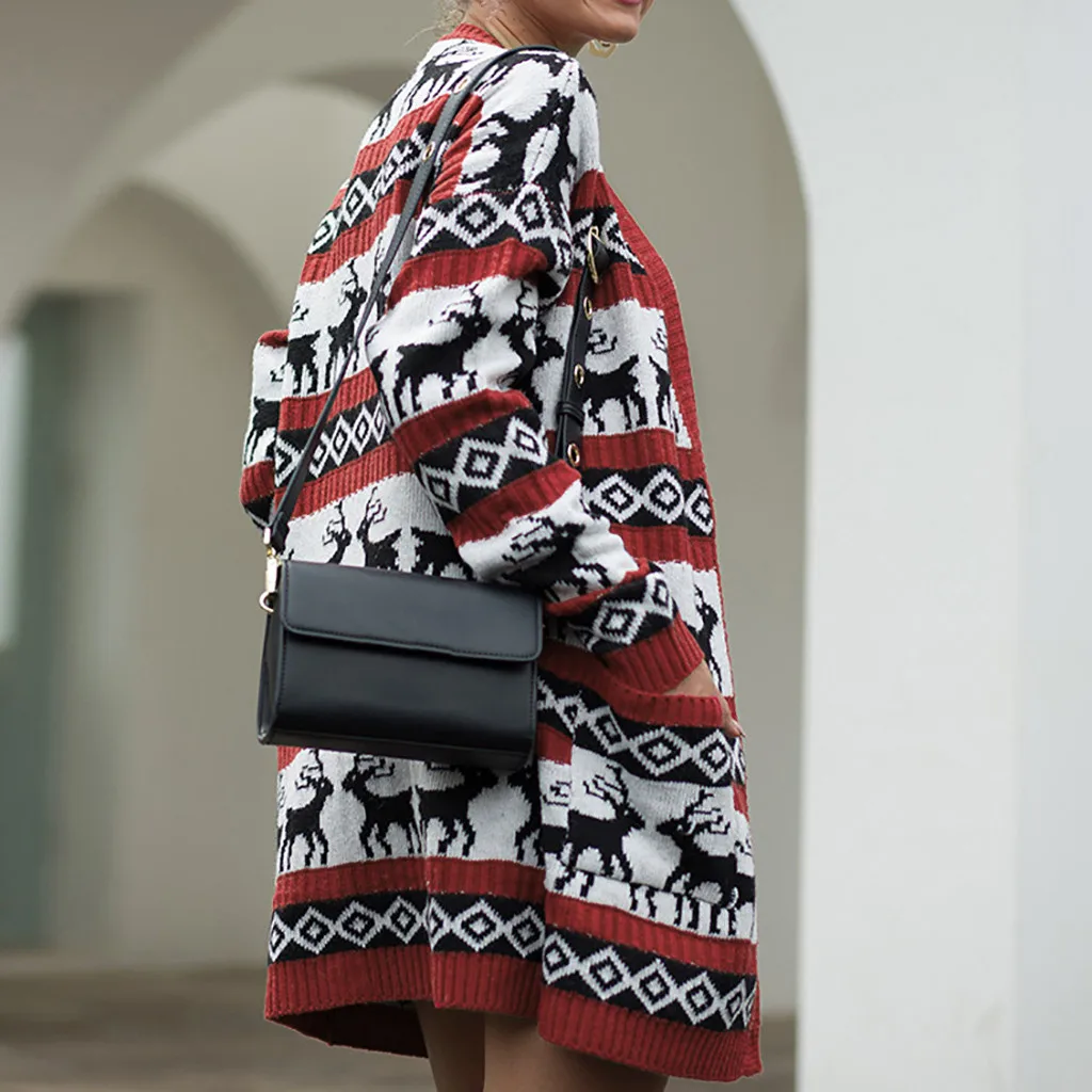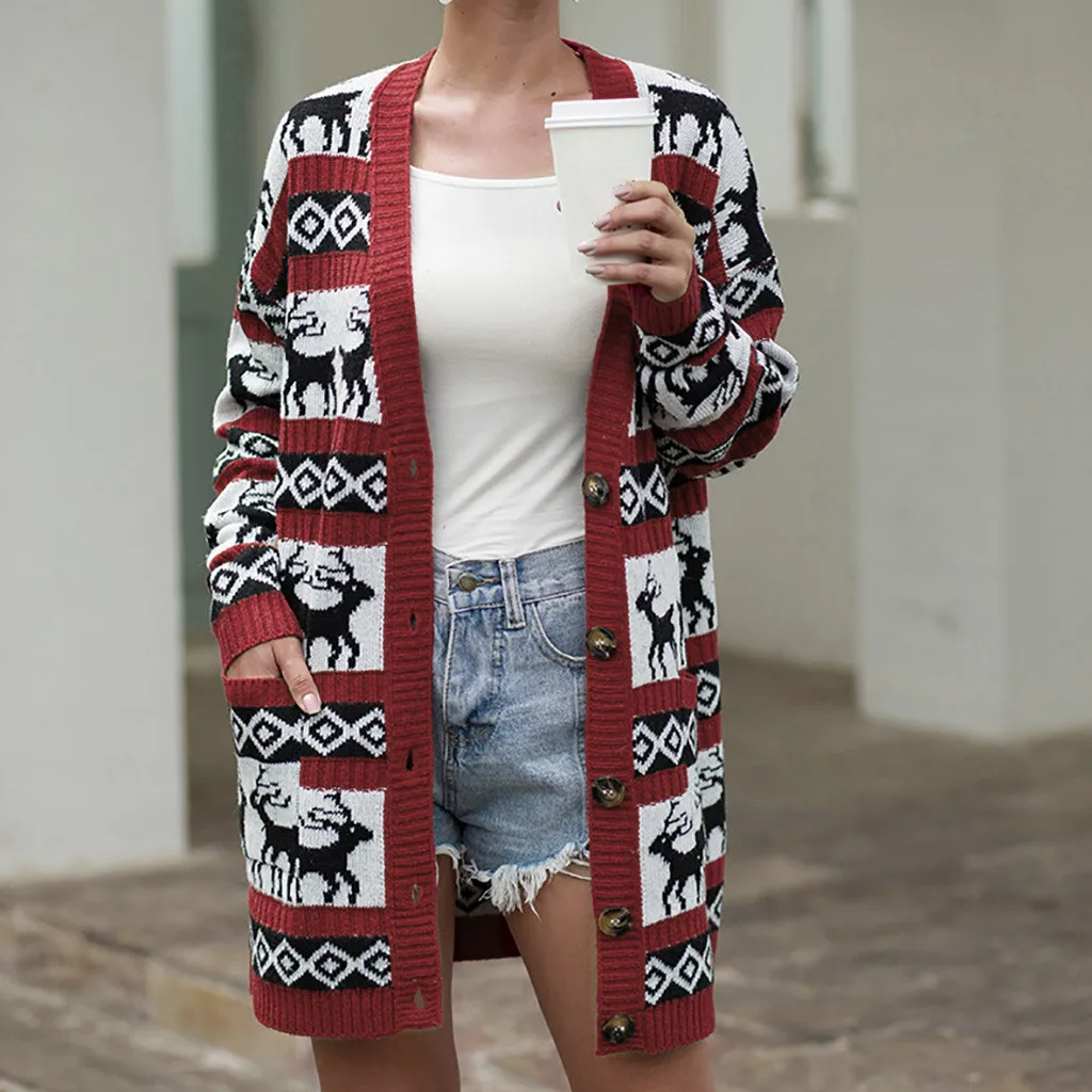 Женская рождественская зимняя повседневная верхняя одежда с длинным рукавом, пальто, топы