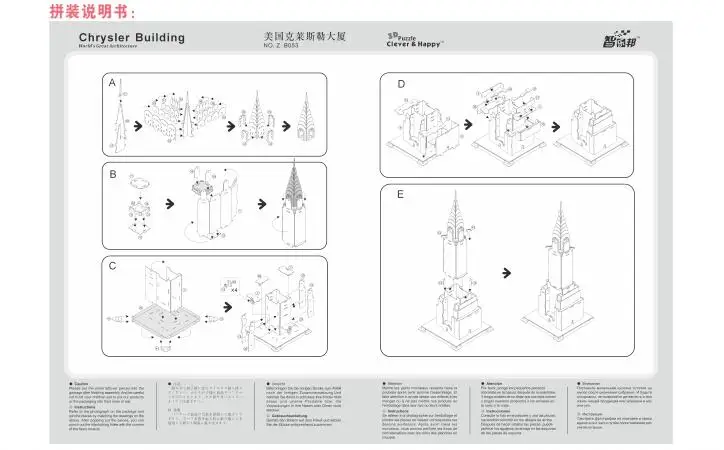 Нью-Йорк Chrysler Building Architect Learning 3D Paper DIY Jigsaw 3431 модель пазла Обучающие комплекты игрушек Детская Подарочная игрушка для мальчиков