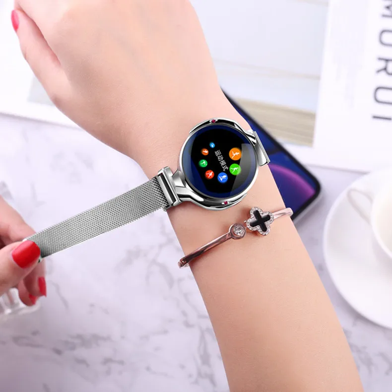 1,04 "TFT экран, четко показывает информацию о экране.Поддержка контроля артериального давления и пульса, что позволяет вам узнать больше о вашем состоянии фитнеса.Поддержка мониторинга сна, мониторинг качества сна, чтобы вы могли узнать больше о состоянии сна.Поддержка шагомера (шаги/калории/расстояние), а также поддержка нескольких спортивных режимов (включая режим плавания, режим бега, режим езды на велосипеде, режим альпинизма, режим баскетбола, режим футбола и т. д.).Поддержка напоминания о звонках и напоминания о сообщениях (например, SMS/QQ/WeChat/Skype/Facebook/WhatsApp и т. д.).Поддержка водонепроницаемой функции IP67, которая может лучше избежать повреждения от мытья рук, брызг воды, дождя и т. д.Поддержка большего количества функций, таких как отображение времени, будильник, напоминание о сидячем положении, менструальный период женщины, камера дистанционного управления, Поиск телефона и т. д.Широкая совместимость, подходит для iOS 8,0 или выше или для Android 4,4 или выше, и поддерживает BT 4,0.Особенности металлического корпуса, модный стиль и изысканный внешний вид.Идеальный подарок для вашей девочки, мамы, любимой и т. Д.