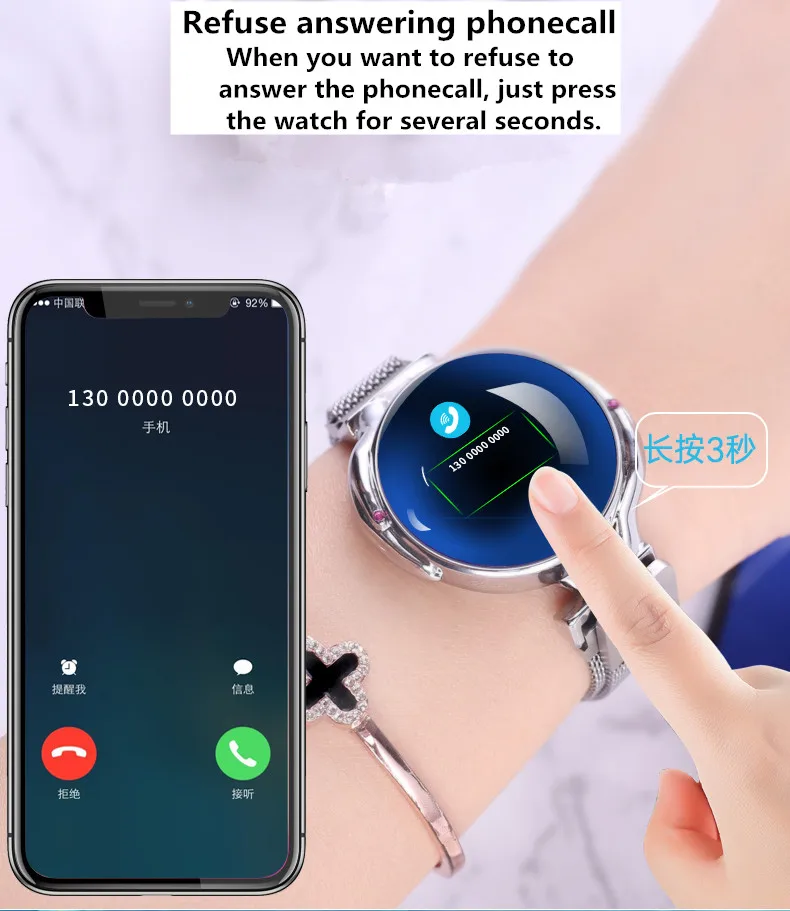 Материал корпуса: нержавеющая стальЦвет: синий, розовое золото, серебро (опционально)Датчик: g-сенсорЭкран дисплея: 1,08 "TFT сенсорный экранВерсия BT: BT 4,0Система: для Android 4,4 или выше/для iOS 8,0 или вышеB-attery: встроенный литий-полимерный аккумулятор 180 мАчУровень водонепроницаемости: IP67![]()