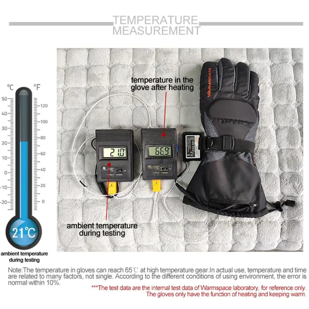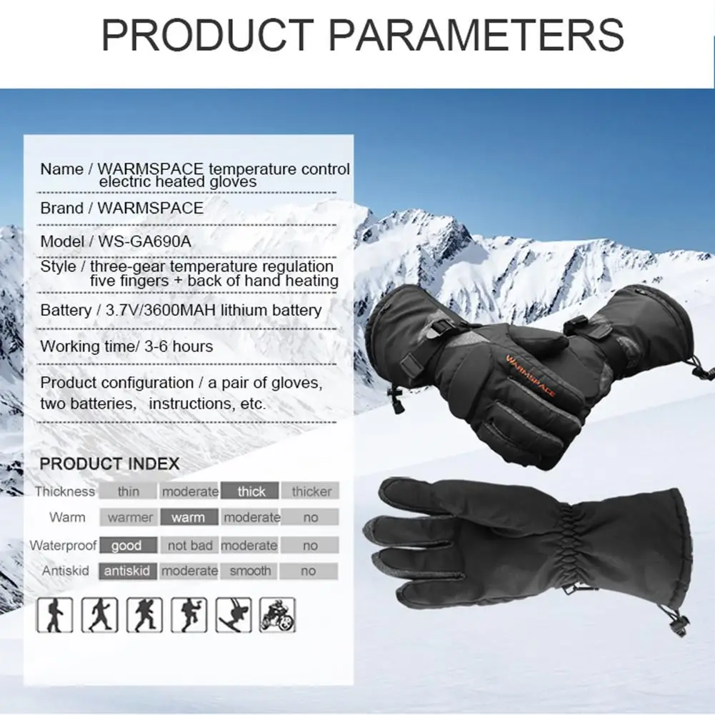 4. Интеллектуальная регулировка температуры: перчатки содержат 2 литиевых аккумулятора 3,7 в/3600 мАч. С визуальным переключателем контроля температуры, сенсорной кнопкой светильник, цветным индикатором дыхания светильник, интуитивно понятным отображением положения шестерни трехступенчатая температура, легче использовать.