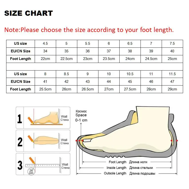 Примечание: 6 : Если у вас широкая стопа, мы рекомендуем вам выбрать обувь на один размер больше. Если они узкие и тонкие, мы рекомендуем вам выбрать на один размер меньше.