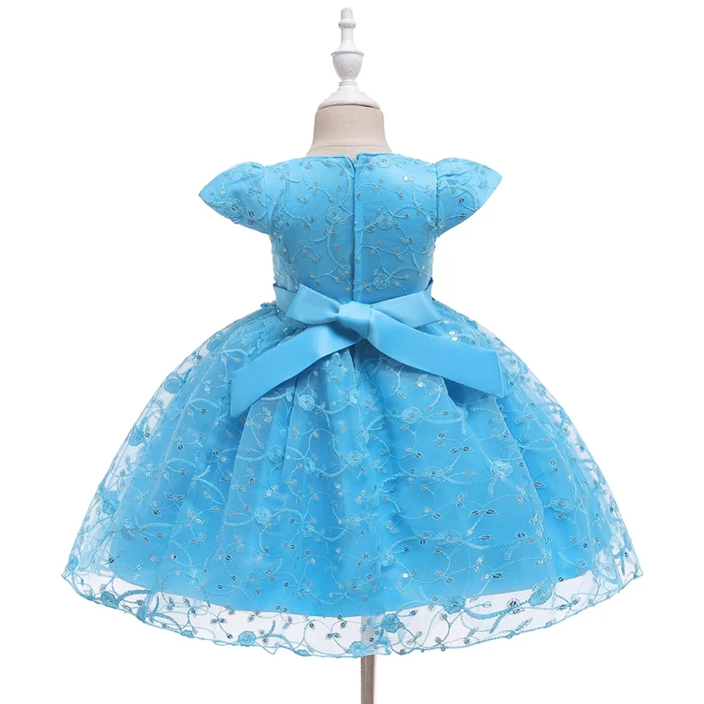 Детское платье принцессы с цветами кружевное и стразами для девочек одежда