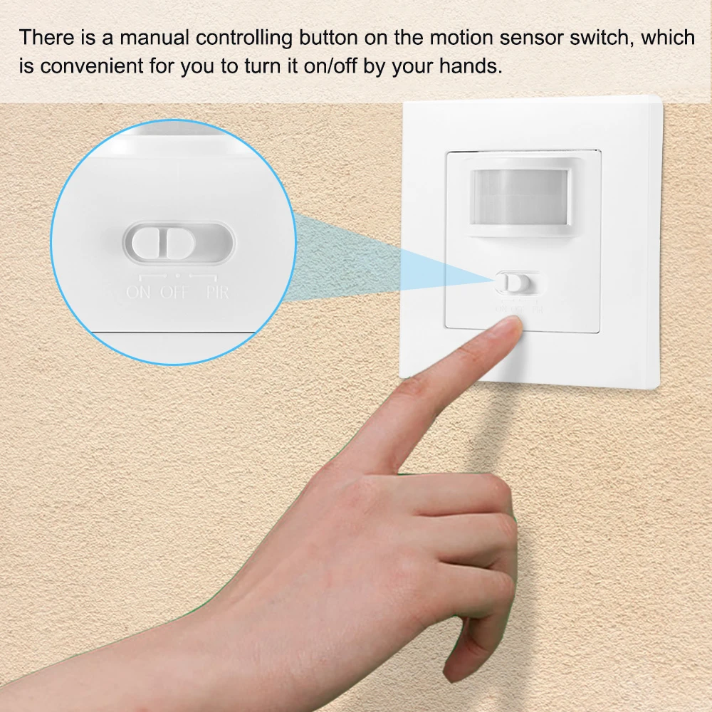 На переключателе датчика движения есть кнопка ручного управления, что удобно для вас, чтобы включить/выключить его руками.