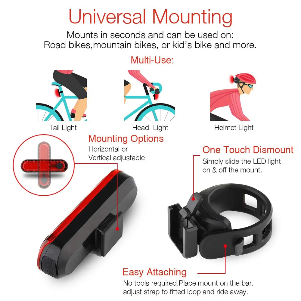 USB Перезаряжаемый задний фонарь для велосипеда и автоматическое отключение при полной зарядке.